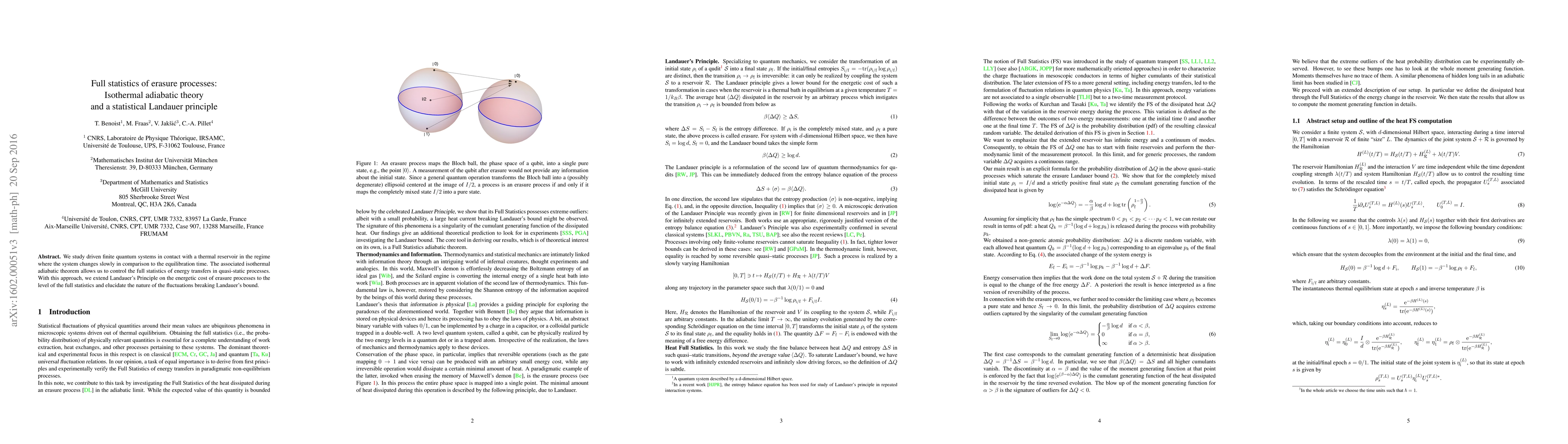 We study driven finite quantum systems in contact with a thermal reservoir in the regime in which the system changes slowly in comparison to the equilibration time. The associated isothermal adiabatic theorem allows us to control the full statistics of energy transfers in quasi-static processes. Within this approach, we extend Landauer's Principle on the energetic cost of erasure processes to the level of the full statistics and elucidate the nature of the fluctuations breaking Landauer's bound.