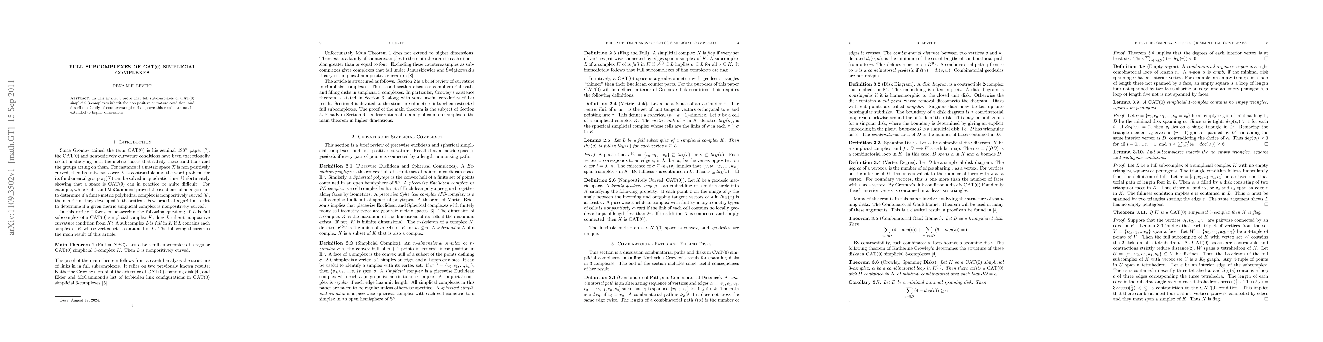 This paper demonstrates that full subcomplexes of CAT(0) 3-dimensional simplicial complexes maintain the non-positive curvature property, while also presenting counterexamples showing this result does not generalize to higher dimensions.