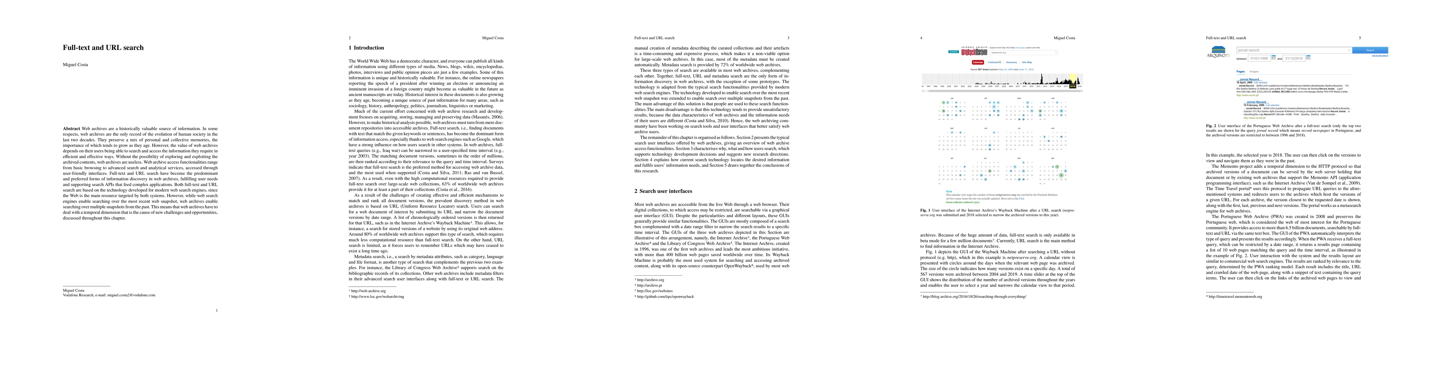 This paper discusses the significance of web archives as a record of societal evolution and explores how full-text and URL search functionalities enhance their accessibility. It addresses the unique challenges web archives face due to their temporal dimension compared to real-time web search engines.