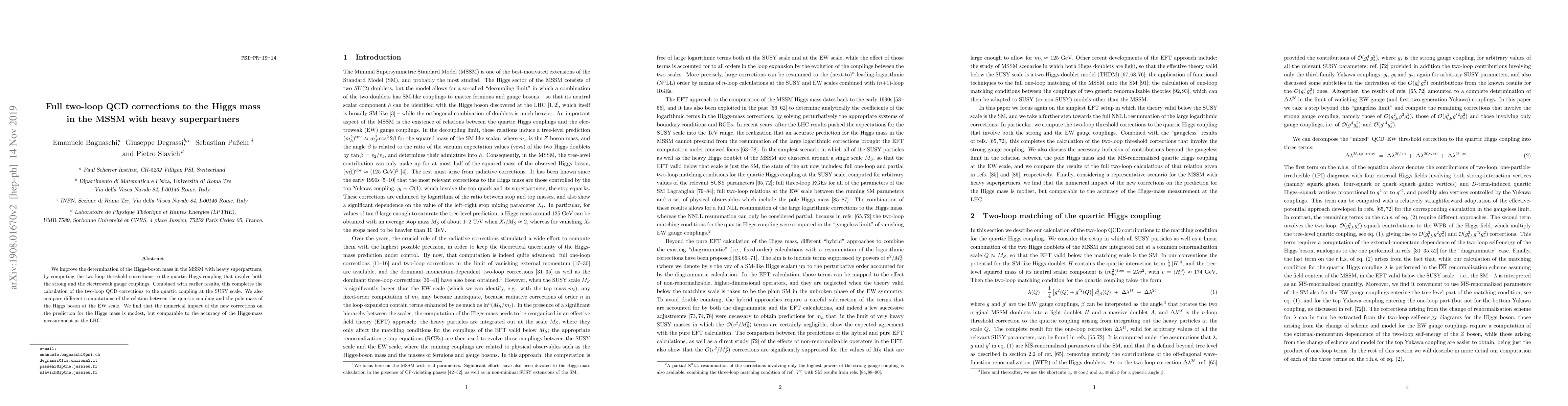 This paper computes the full two-loop QCD corrections to the Higgs mass in the MSSM with heavy superpartners, completing the two-loop QCD corrections to the quartic coupling at the SUSY scale. The new corrections have a modest but measurable effect on the Higgs mass prediction, comparable to current LHC measurement accuracy.