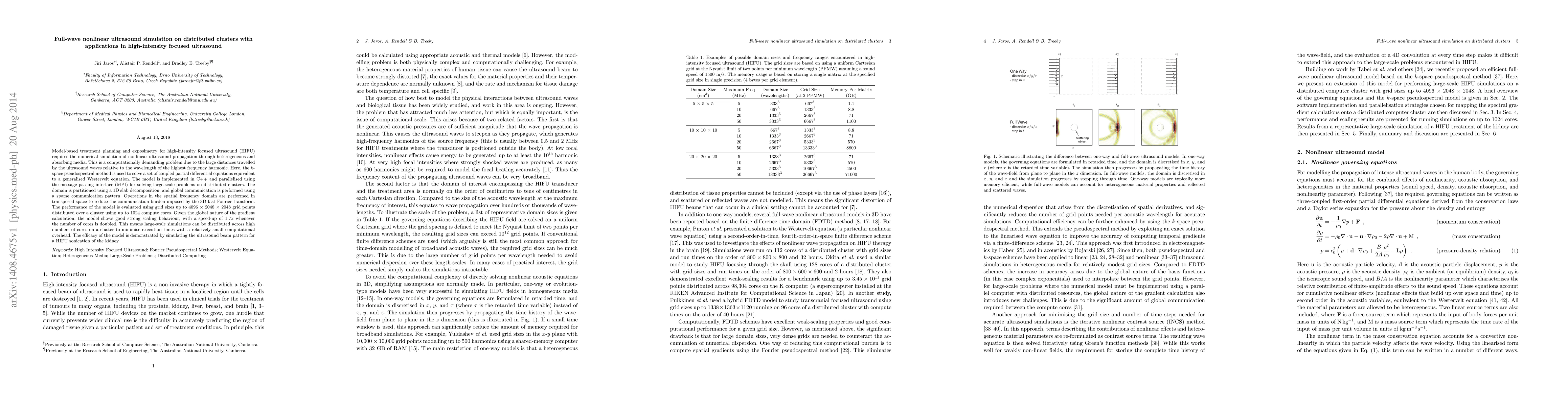 This paper presents a full-wave nonlinear ultrasound simulation method using the k-space pseudospectral technique, parallelised with MPI for distributed clusters. The model demonstrates strong scaling and is effective for high-intensity focused ultrasound treatment planning, as shown by simulating a kidney sonication.