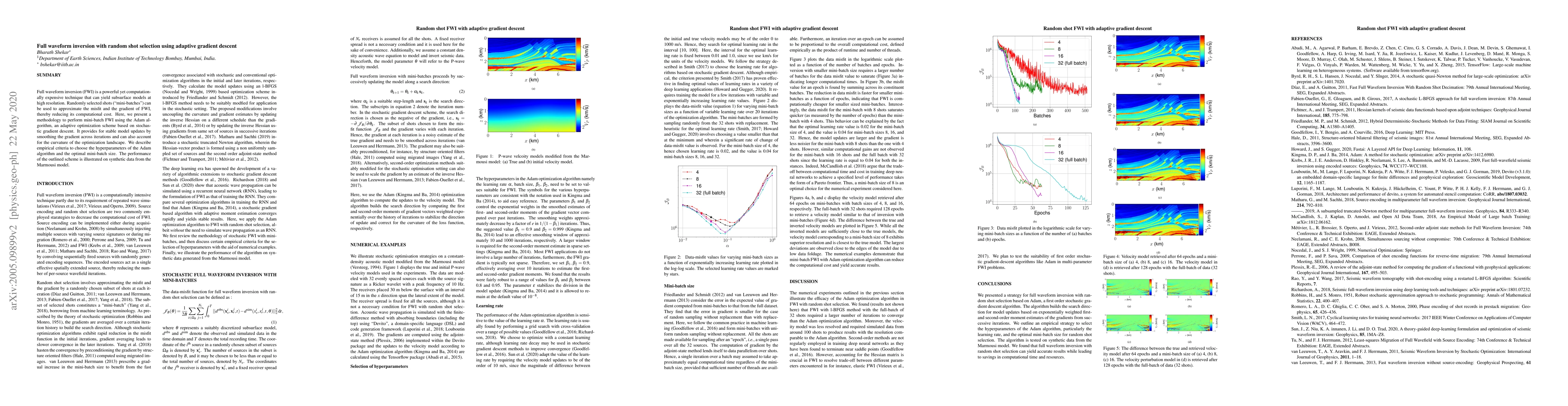 This paper proposes a cost-effective mini-batch full waveform inversion (FWI) method using the Adam algorithm for adaptive gradient descent, which stabilizes model updates and accounts for optimization landscape curvature. The method's performance is demonstrated on synthetic data from the Marmousi model.