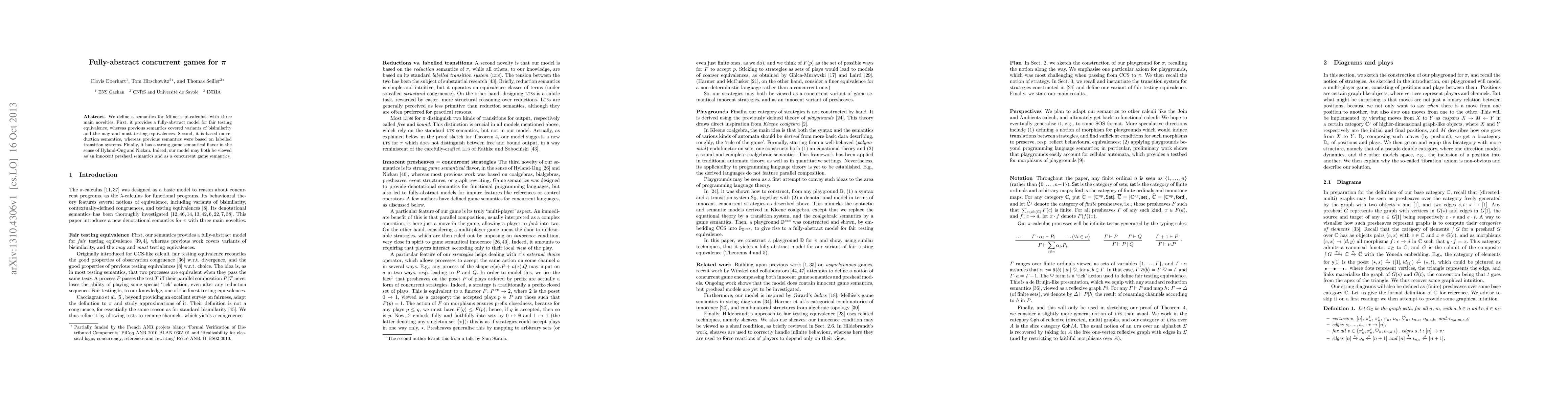 The paper introduces a novel fully-abstract semantics for Milner's pi-calculus, focusing on fair testing equivalence and employing reduction semantics, diverging from previous labelled transition system-based approaches, and incorporating a concurrent game semantics inspired by Hyland-Ong and Nickau.