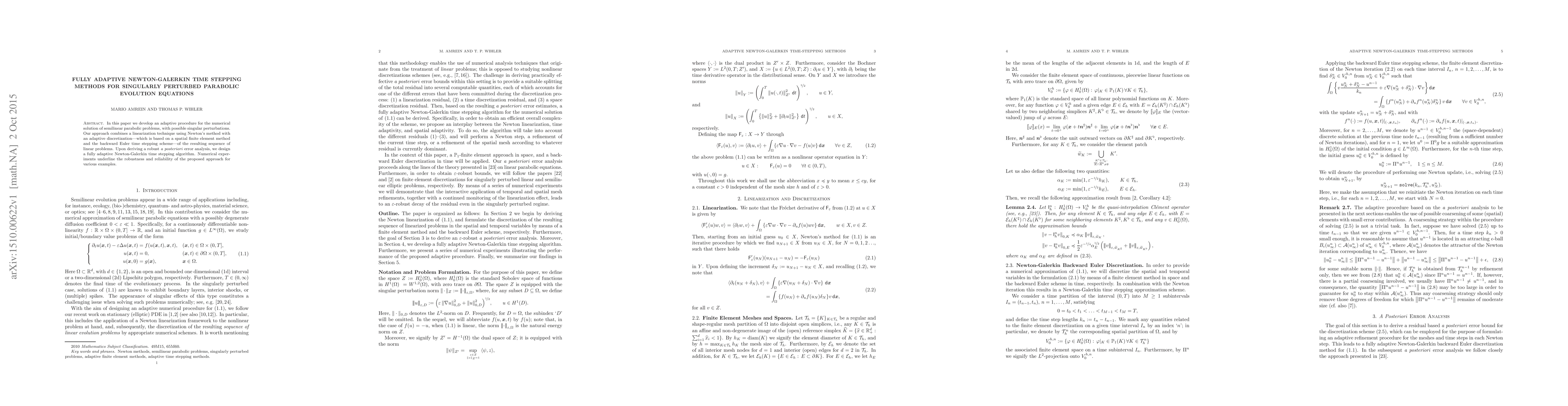 This paper proposes an adaptive numerical method combining Newton's method and adaptive Galerkin discretization for solving semilinear parabolic equations with singular perturbations. The method's robustness is validated through a posteriori error analysis and numerical experiments.