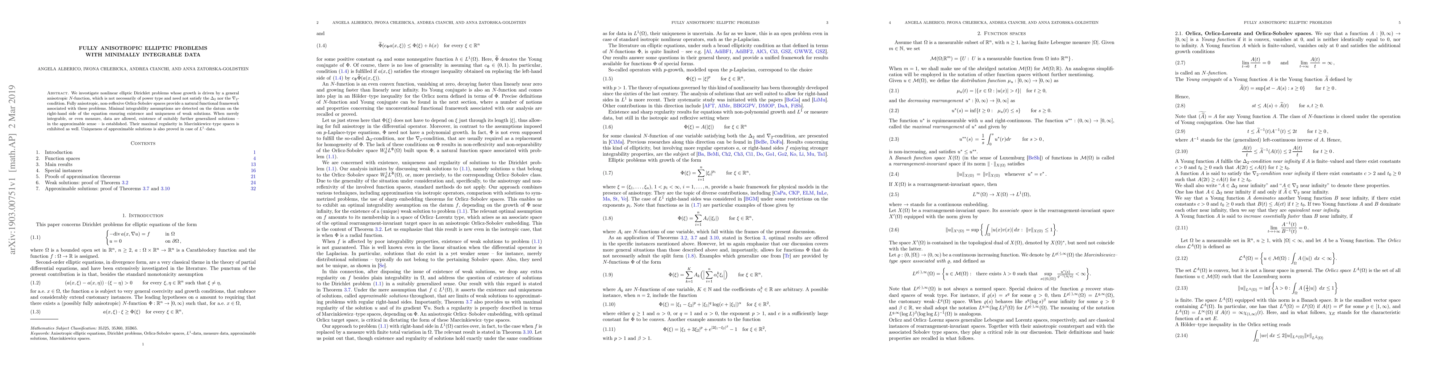 We investigate nonlinear elliptic Dirichlet problems whose growth is driven by a general anisotropic $N$-function, which is not necessarily of power type and need not satisfy the $\Delta_2$ nor the $\nabla _2$-condition. Fully anisotropic, non-reflexive Orlicz-Sobolev spaces provide a natural functional framework associated with these problems. Minimal integrability assumptions are detected on the datum on the right-hand side of the equation ensuring existence and uniqueness of weak solutions. When merely integrable, or even measure, data are allowed, existence of suitably further generalized solutions - in the approximable sense - is established. Their maximal regularity in Marcinkiewicz-type spaces is exhibited as well. Uniqueness of approximable solutions is also proved in case of $L^1$-data.