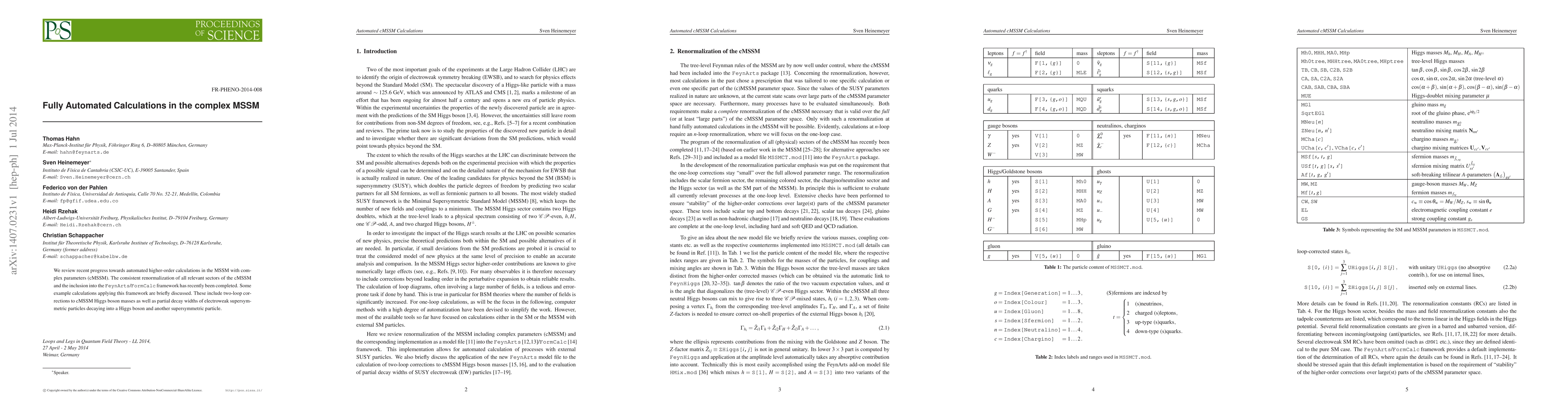 We review recent progress towards automated higher-order calculations in the MSSM with complex parameters (cMSSM). The consistent renormalization of all relevant sectors of the cMSSM and the inclusion into the FeynArts/FormCalc framework has recently been completed. Some example calculations applying this framework are briefly discussed. These include two-loop corrections to cMSSM Higgs boson masses as well as partial decay widths of electroweak supersymmetric particles decaying into a Higgs boson and another supersymmetric particle.
