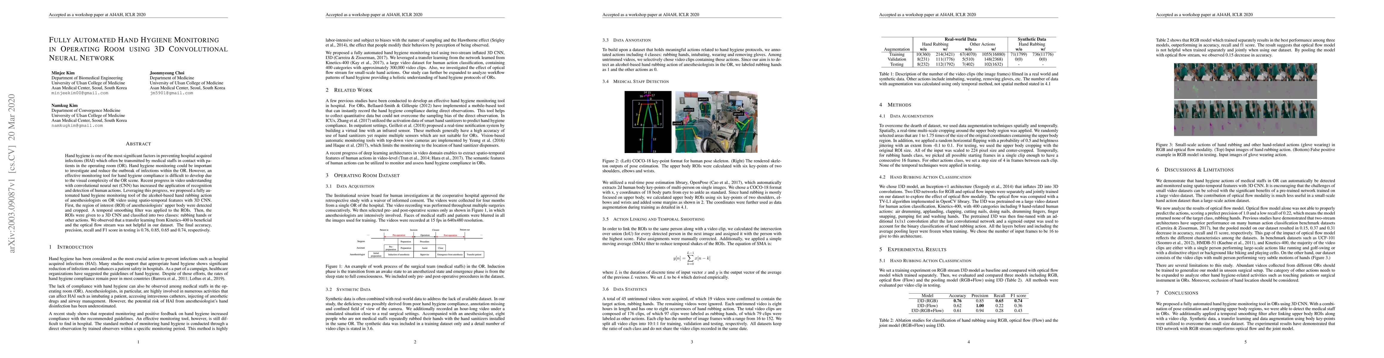 Researchers developed a fully automated hand hygiene monitoring system for operating room using 3D convolutional neural network, achieving accuracy of 76% in detecting anesthesiologists' hand rubbing actions.