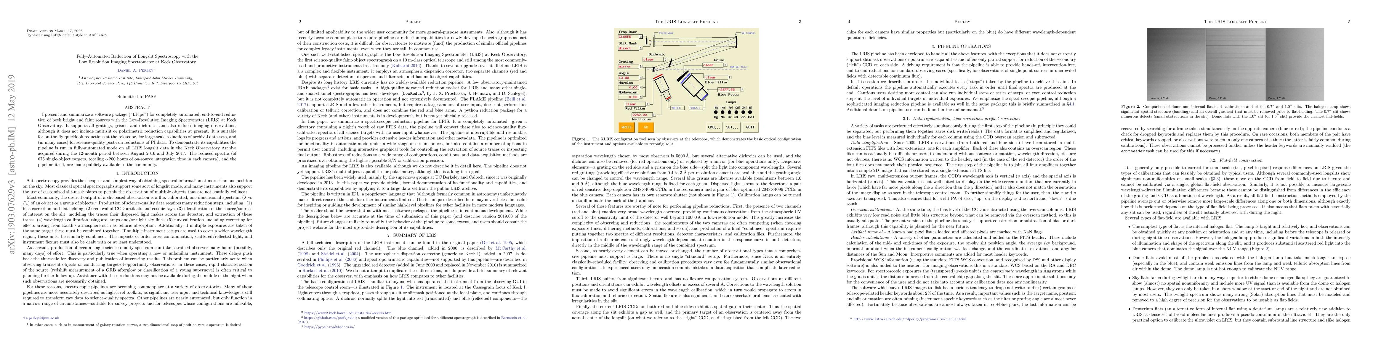 The paper introduces "LPipe," a software package for fully automated reduction of longslit spectroscopy data from the Low-Resolution Imaging Spectrometer (LRIS) at Keck Observatory. The tool supports various gratings and imaging observations, and is suitable for both quicklook and science-quality reductions.