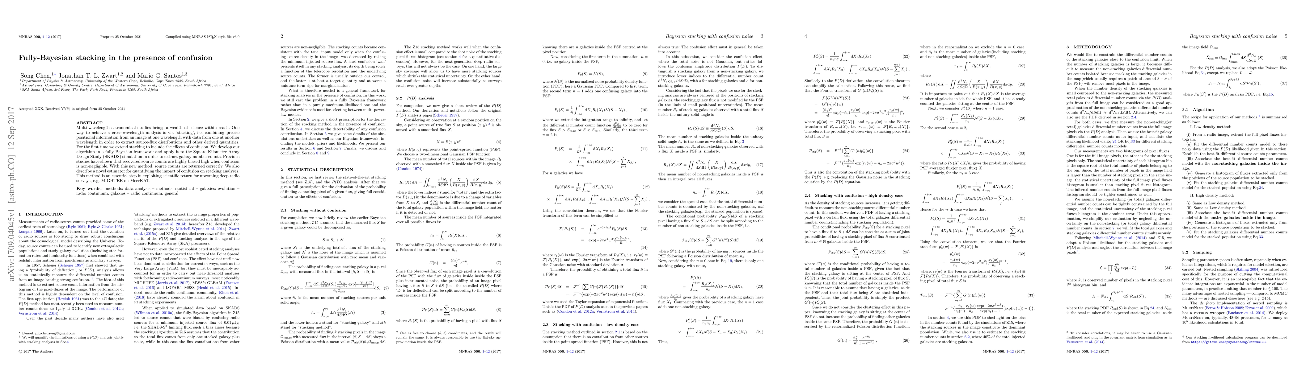 This paper introduces a fully Bayesian stacking method to account for confusion in multi-wavelength astronomical studies, successfully extracting accurate galaxy number counts from the SKADS simulation. It also presents a new estimator to quantify confusion's impact, crucial for future deep radio surveys like MIGHTEE on MeerKAT.