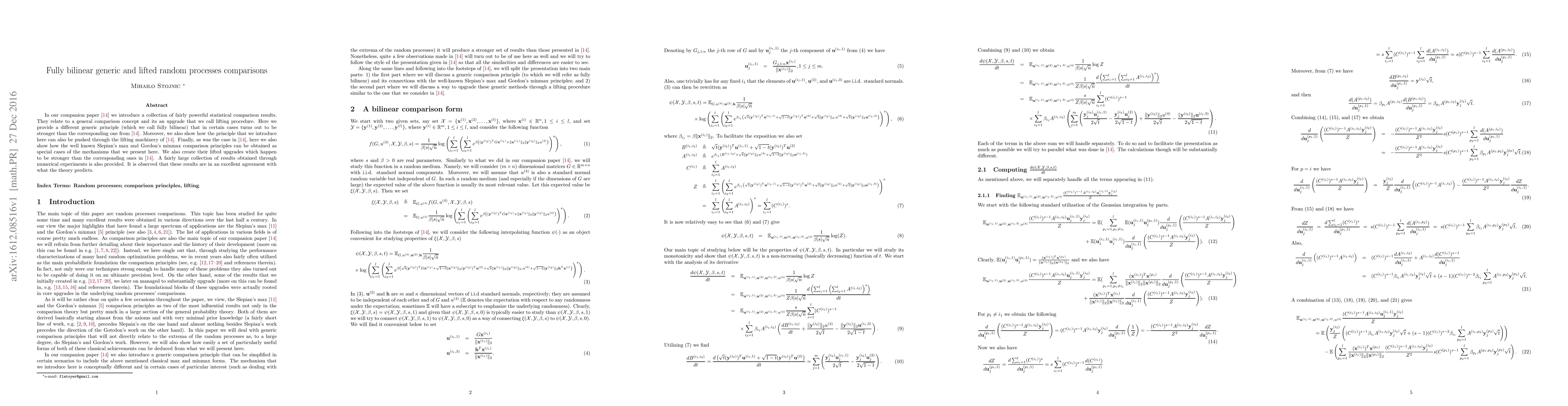 In our companion paper \cite{Stojnicgscomp16} we introduce a collection of fairly powerful statistical comparison results. They relate to a general comparison concept and its an upgrade that we call lifting procedure. Here we provide a different generic principle (which we call fully bilinear) that in certain cases turns out to be stronger than the corresponding one from \cite{Stojnicgscomp16}. Moreover, we also show how the principle that we introduce here can also be pushed through the lifting machinery of \cite{Stojnicgscomp16}. Finally, as was the case in \cite{Stojnicgscomp16}, here we also show how the well known Slepian's max and Gordon's minmax comparison principles can be obtained as special cases of the mechanisms that we present here. We also create their lifted upgrades which happen to be stronger than the corresponding ones in \cite{Stojnicgscomp16}. A fairly large collection of results obtained through numerical experiments is also provided. It is observed that these results are in an excellent agreement with what the theory predicts.