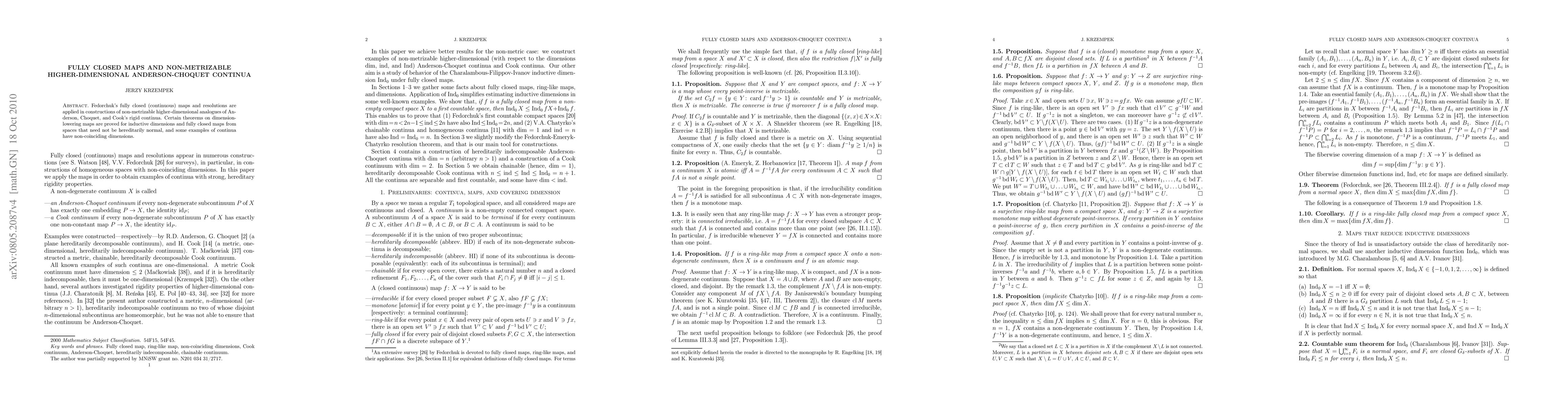 This paper constructs non-metrizable higher-dimensional analogues of Anderson, Choquet, and Cook's continua using Fedorchuk's fully closed maps and resolutions. It proves theorems on dimension-lowering maps for inductive dimensions and fully closed maps, even from spaces that are not necessarily hereditarily normal.