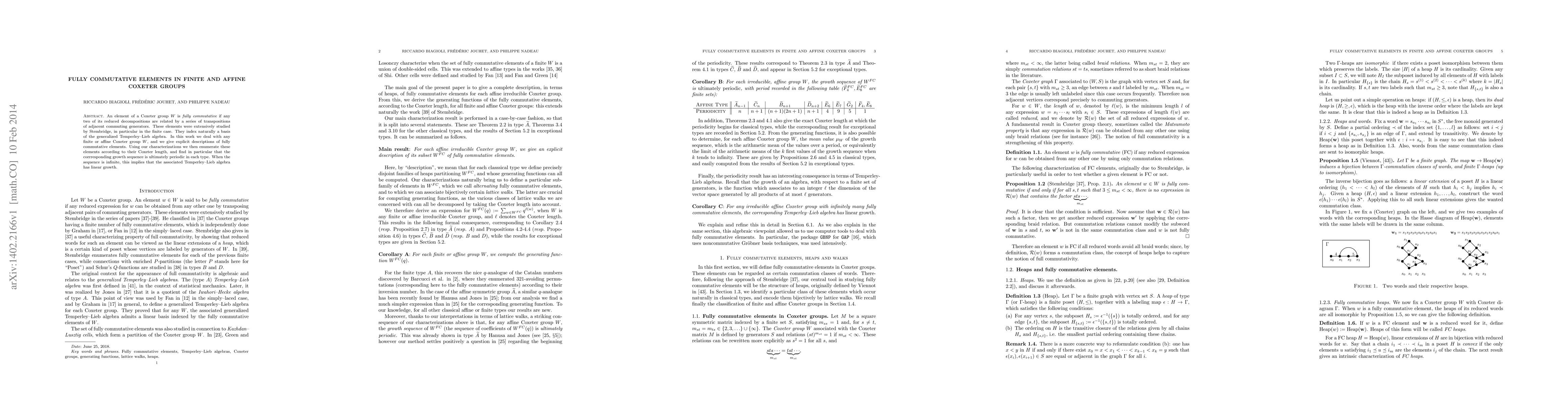 The paper introduces explicit descriptions and generating functions for fully commutative elements in both finite and affine Coxeter groups, extending known results for type A and providing new insights into their structure and enumeration.