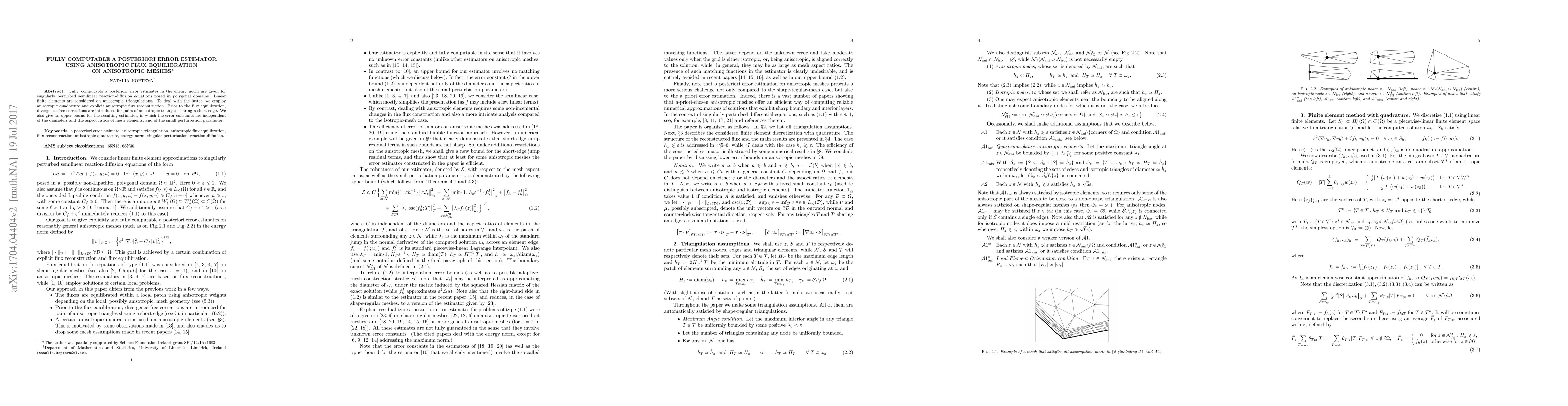 Fully computable a posteriori error estimates in the energy norm are given for singularly perturbed semilinear reaction-diffusion equations posed in polygonal domains. Linear finite elements are considered on anisotropic triangulations. To deal with the latter, we employ anisotropic quadrature and explicit anisotropic flux reconstruction. Prior to the flux equilibration, divergence-free corrections are introduced for pairs of anisotropic triangles sharing a short edge. We also give an upper bound for the resulting estimator, in which the error constants are independent of the diameters and the aspect ratios of mesh elements, and of the small perturbation parameter.