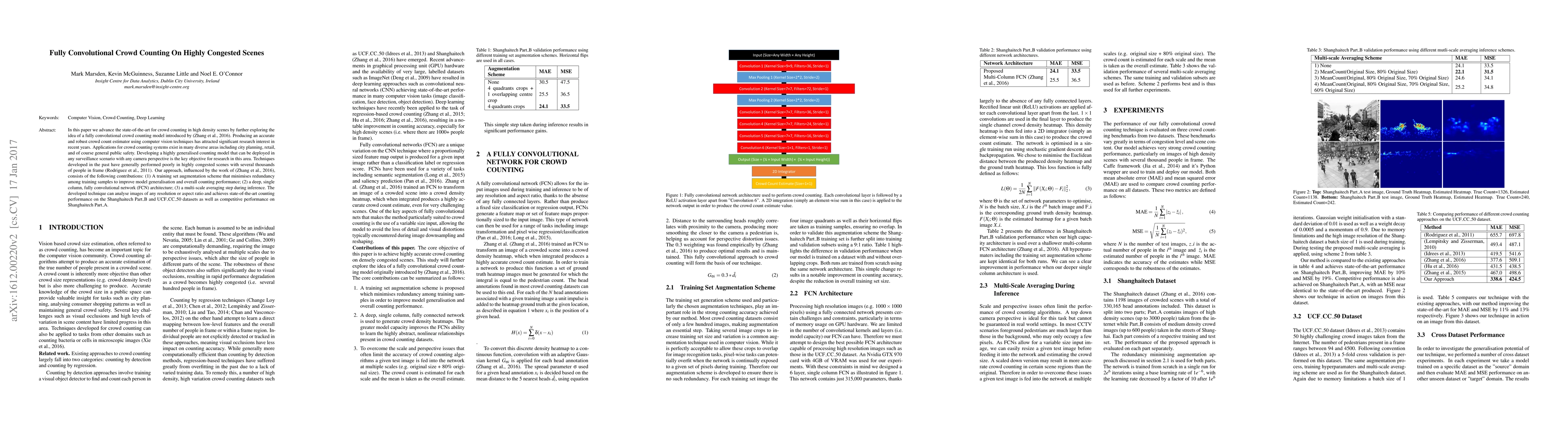 This paper proposes a fully convolutional network for crowd counting in highly congested scenes, improving upon previous models by introducing a training set augmentation scheme, a deep FCN architecture, and a multi-scale averaging inference step, achieving state-of-the-art performance on multiple datasets.