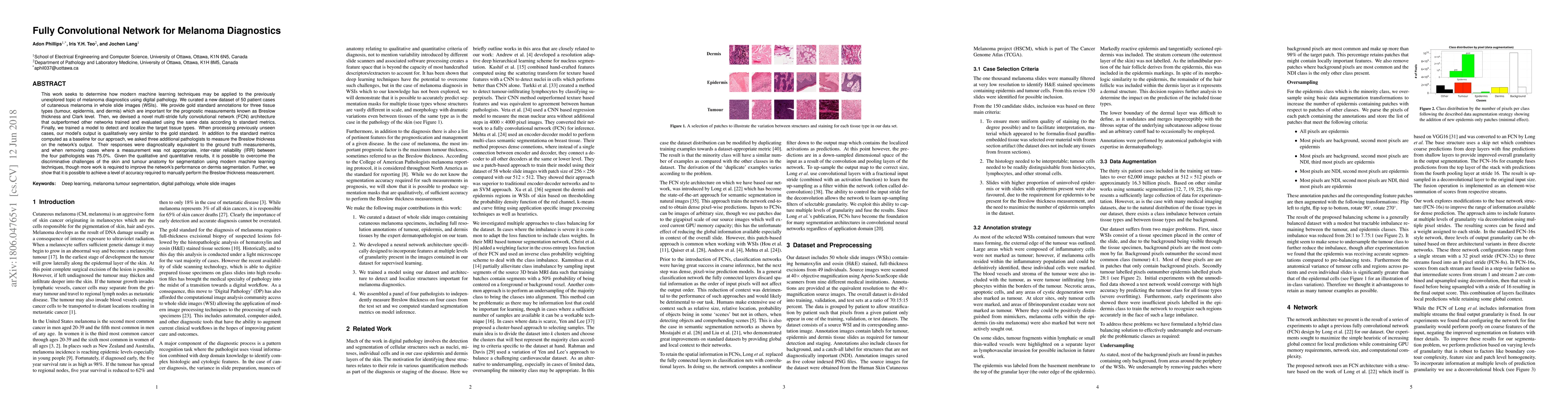 This work seeks to determine how modern machine learning techniques may be applied to the previously unexplored topic of melanoma diagnostics using digital pathology. We curated a new dataset of 50 patient cases of cutaneous melanoma using digital pathology. We provide gold standard annotations for three tissue types (tumour, epidermis, and dermis) which are important for the prognostic measurements known as Breslow thickness and Clark level. Then, we devised a novel multi-stride fully convolutional network (FCN) architecture that outperformed other networks trained and evaluated using the same data according to standard metrics. Finally, we trained a model to detect and localize the target tissue types. When processing previously unseen cases, our model's output is qualitatively very similar to the gold standard. In addition to the standard metrics computed as a baseline for our approach, we asked three additional pathologists to measure the Breslow thickness on the network's output. Their responses were diagnostically equivalent to the ground truth measurements, and when removing cases where a measurement was not appropriate, inter-rater reliability (IRR) between the four pathologists was 75.0%. Given the qualitative and quantitative results, it is possible to overcome the discriminative challenges of the skin and tumour anatomy for segmentation using modern machine learning techniques, though more work is required to improve the network's performance on dermis segmentation. Further, we show that it is possible to achieve a level of accuracy required to manually perform the Breslow thickness measurement.