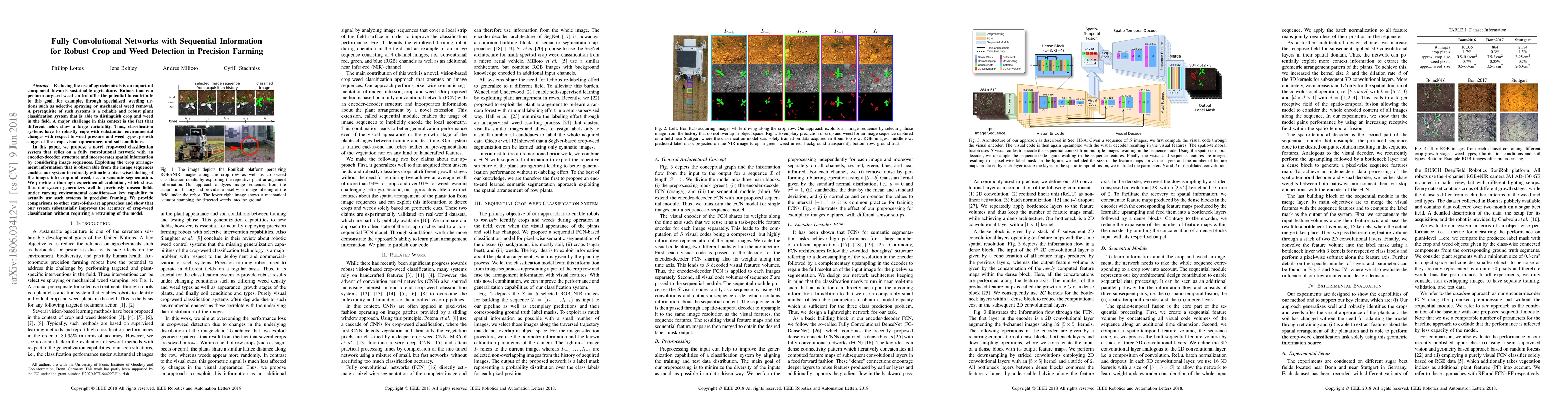 This paper proposes a novel crop-weed classification system using a fully convolutional network with sequential information to achieve robust semantic segmentation. The system effectively generalizes to new fields under varying conditions, improving classification accuracy without needing model retraining.