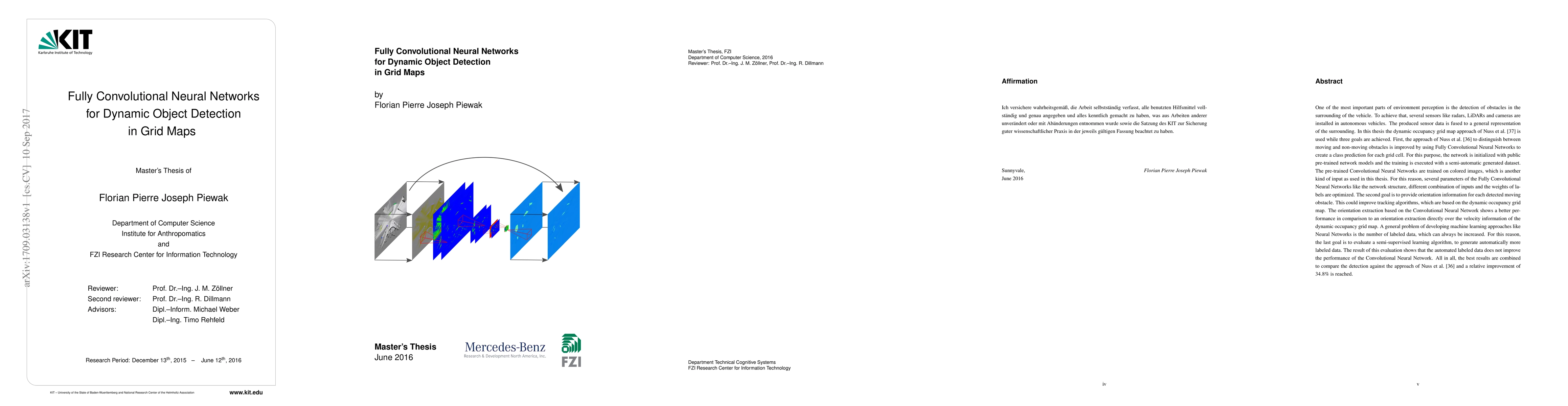 This thesis enhances dynamic object detection in vehicle environment perception using Fully Convolutional Neural Networks (FCN) on a dynamic occupancy grid map. It improves the classification of moving vs. non-moving obstacles and provides orientation information for moving objects, achieving a 34.8% relative improvement over previous methods, though semi-supervised learning does not enhance model performance.