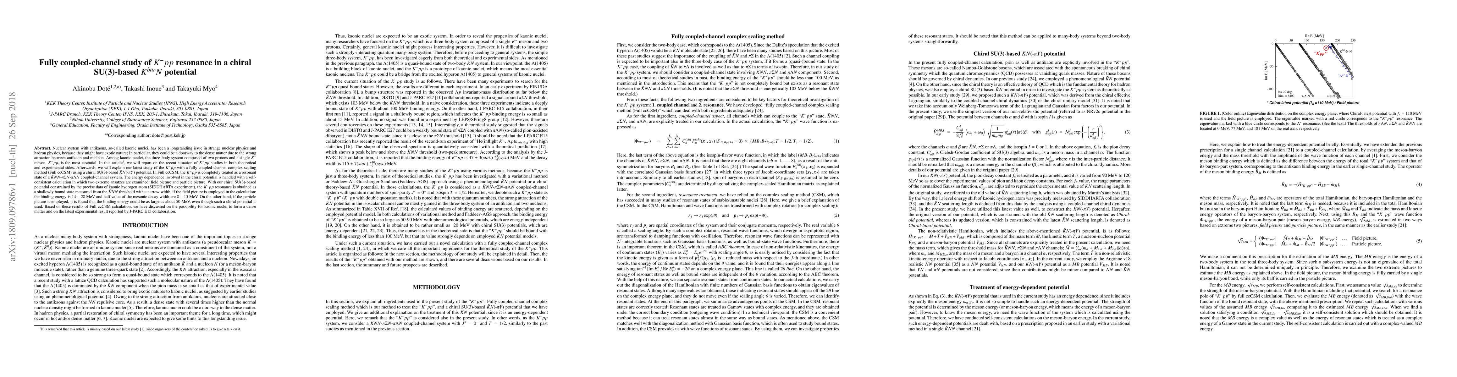 Nuclear system with antikaons, so-called kaonic nuclei, has been a longstanding issue in strange nuclear physics and hadron physics, because they might have exotic nature; In particular, they could be a doorway to the dense matter due to the strong attraction between antikaon and nucleon. Among kaonic nuclei, the three-body system composed of two protons and a single $K^-$ meson, $K^-pp$, is the most essential. In this article, we will report on the recent situation of $K^-pp$ studies in both theoretical and experimental sides. Afterwards, we will explain our latest study of the $K^-pp$ with a fully coupled-channel complex scaling method (Full ccCSM) using a chiral SU(3)-based $\bar{K}N$(-$\pi Y$) potential. In Full ccCSM, the $K^-pp$ is completely treated as a resonant state of a $\bar{K}NN$-$\pi\Sigma N$-$\pi\Lambda N$ coupled-channel system. The energy dependence involved in the chiral potential is handled with a self-consistent calculation in which two extreme ansatzes are examined: field picture and particle picture. With our chiral SU(3)-based potential constrained by the precise data of kaonic hydrogen atom (SIDDHARTA experiment), the $K^-pp$ resonance is obtained as a shallowly bound state measured from the $\bar{K}NN$ threshold with a narrow width, if the field picture is employed in the calculation: the binding energy is $14-28$ MeV and half value of the mesonic decay width are $8-15$ MeV. On the other hand, if the particle picture is employed, it is found that the binding energy could be as large as about 50 MeV, even though such a chiral potential is used. Based on these results of Full ccCSM calculation, we have discussed on the possibility for kaonic nuclei to form a dense matter and on the latest experimental result reported by J-PARC E15 collaboration.
