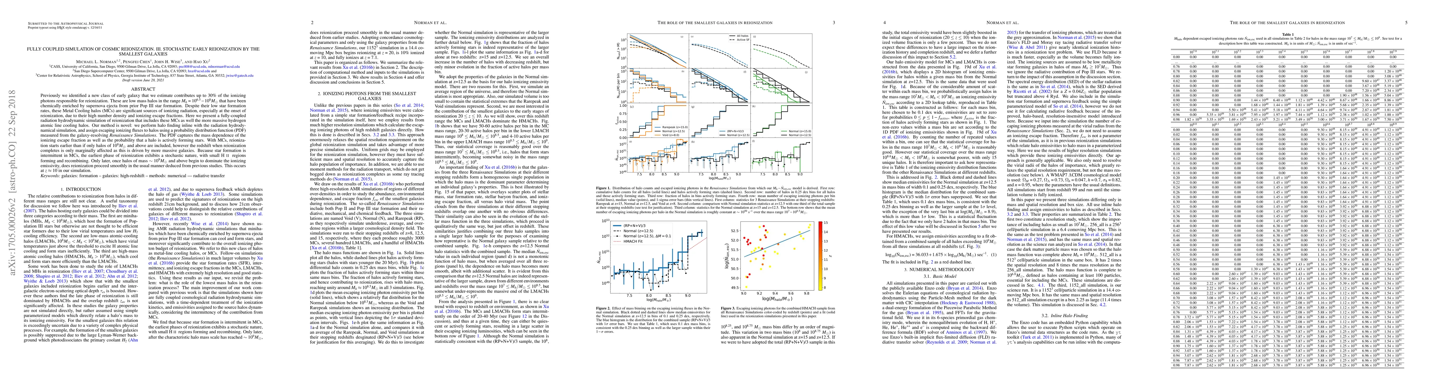 Previously we identified a new class of early galaxy that we estimate contributes up to 30\% of the ionizing photons responsible for reionization. These are low mass halos in the range $M_h =10^{6.5}-10^{8} M_{\odot}$ that have been chemically enriched by supernova ejecta from prior Pop III star formation. Despite their low star formation rates, these Metal Cooling halos (MCs) are significant sources of ionizing radiation, especially at the onset of reionization, due to their high number density and ionizing escape fractions. Here we present a fully-coupled radiation hydrodynamic simulation of reionization that includes these MCs as well the more massive hydrogen atomic line cooling halos. Our method is novel: we perform halo finding inline with the radiation hydrodynamical simulation, and assign escaping ionizing fluxes to halos using a probability distribution function (PDF) measured from the galaxy-resolving Renaissance Simulations. The PDF captures the mass dependence of the ionizing escape fraction as well as the probability that a halo is actively forming stars. With MCs, reionization starts earlier than if only halos of $10^8 M_{\odot}$ and above are included, however the redshift when reionization completes is only marginally affected as this is driven by more massive galaxies. Because star formation is intermittent in MCs, the earliest phase of reionization exhibits a stochastic nature, with small H II regions forming and recombining. Only later, once halos of mass $\sim 10^9 M_{\odot}$ and above begin to dominate the ionizing emissivity, does reionization proceed smoothly in the usual manner deduced from previous studies. This occurs at $z\approx 10$ in our simulation.