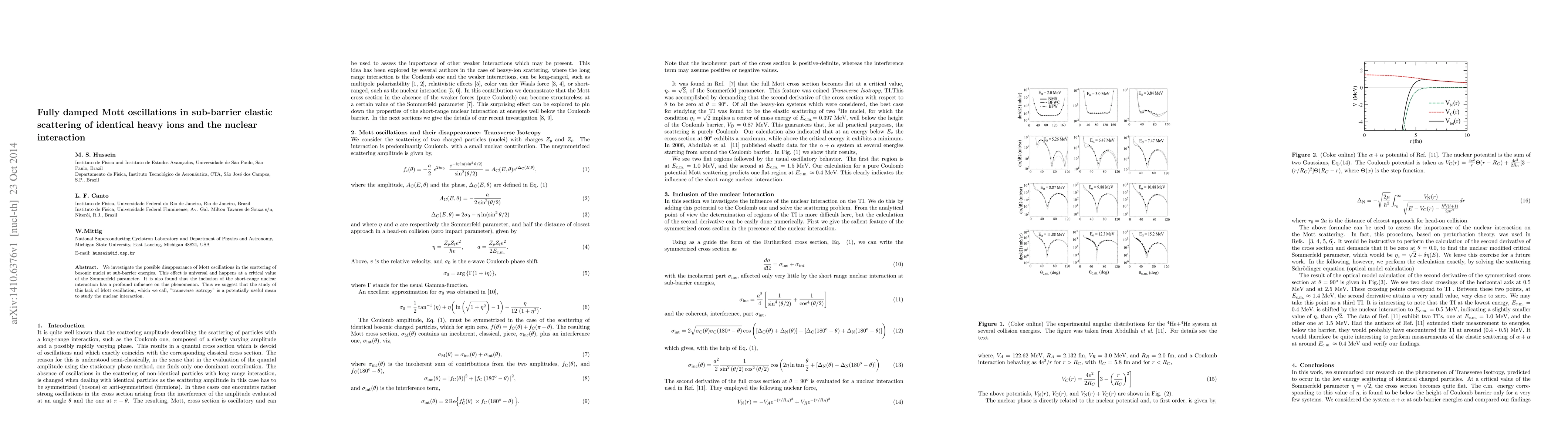 Researchers investigate a phenomenon where Mott oscillations disappear in heavy ion collisions at sub-barrier energies, influenced by the nuclear interaction, and propose studying this effect to understand the nuclear interaction.