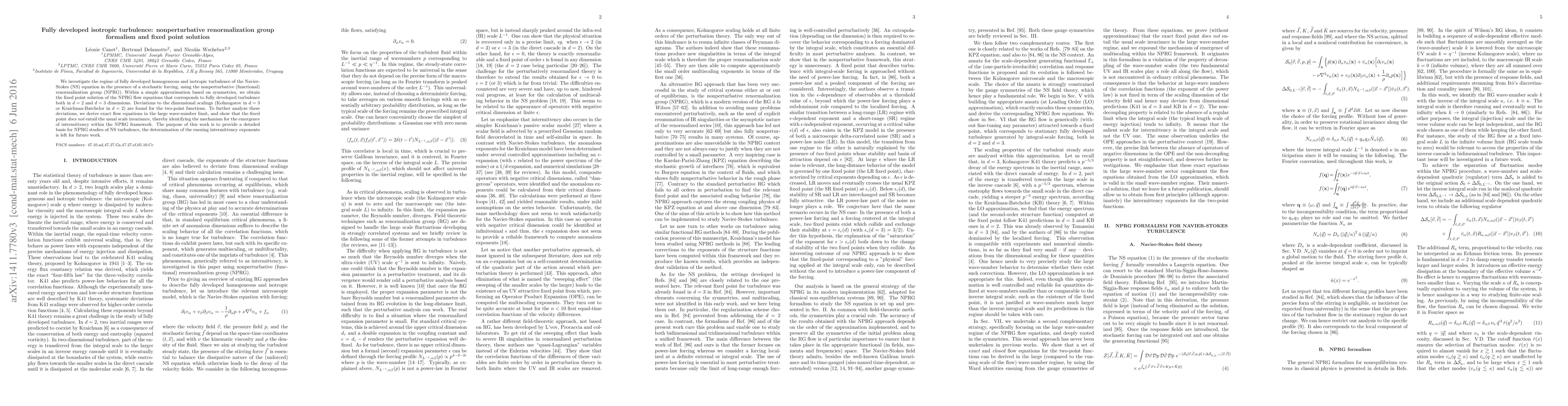 This paper uses nonperturbative renormalization group formalism to study fully developed isotropic turbulence in the Navier-Stokes equation, identifying a fixed point solution that deviates from standard dimensional scalings. It reveals the emergence of intermittency through the breakdown of scale invariance in the large wave-number limit, providing a foundation for future studies on turbulence intermittency.