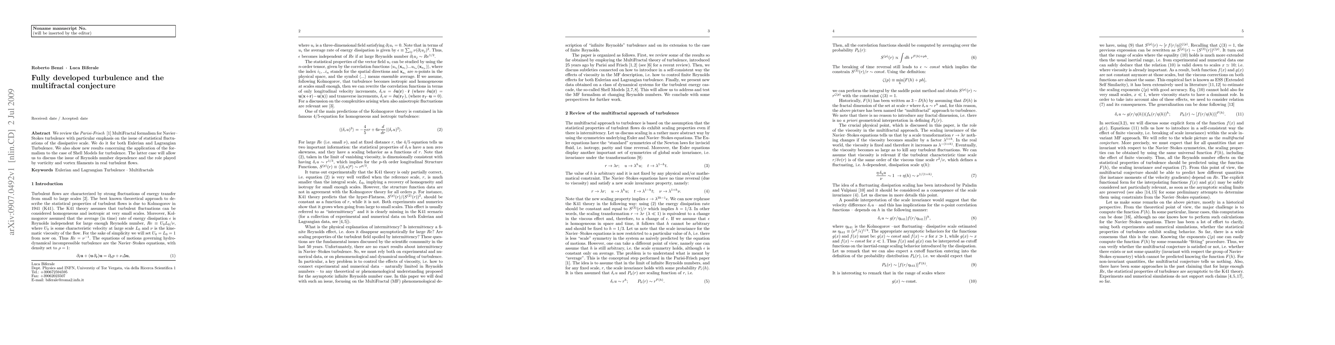 We review the Parisi-Frisch MultiFractal formalism for Navier--Stokes turbulence with particular emphasis on the issue of statistical fluctuations of the dissipative scale. We do it for both Eulerian and Lagrangian Turbulence. We also show new results concerning the application of the formalism to the case of Shell Models for turbulence. The latter case will allow us to discuss the issue of Reynolds number dependence and the role played by vorticity and vortex filaments in real turbulent flows.