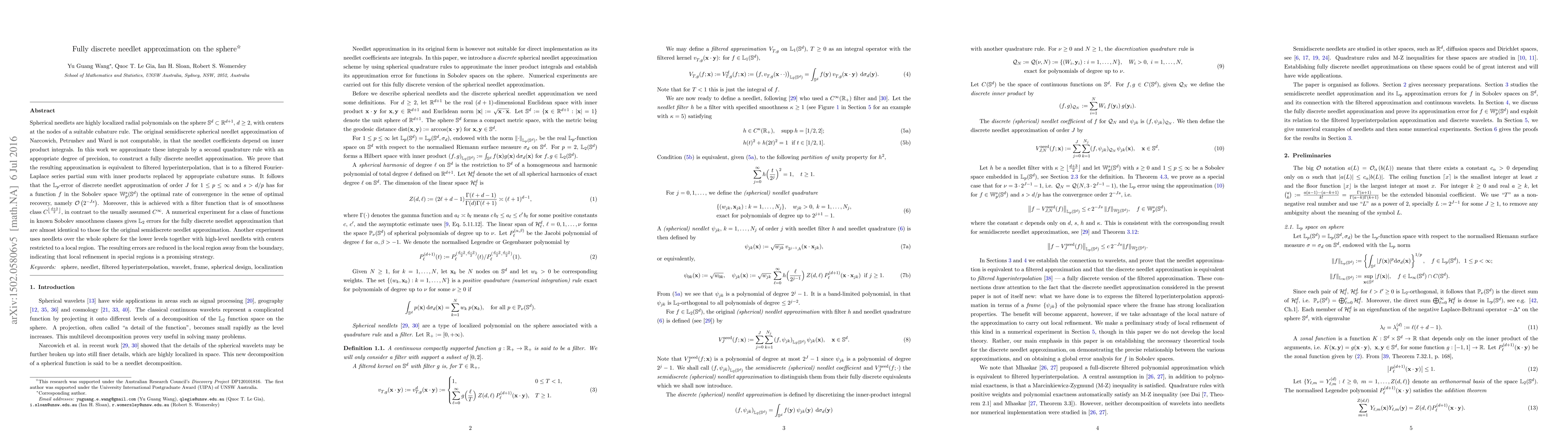 This paper develops a fully discrete needlet approximation on the sphere, addressing the non-computability of the original semidiscrete version by approximating integrals with a second quadrature rule. The resulting approximation achieves optimal convergence rates in $\mathbb{L}_{p}$ norms for Sobolev functions and demonstrates promising local refinement strategies through numerical experiments.