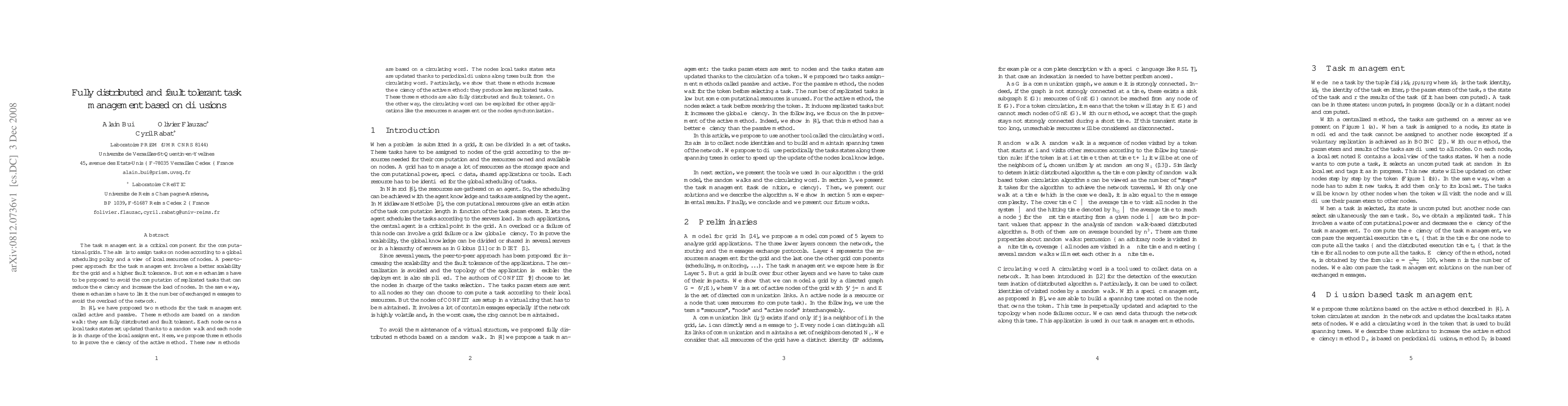 This paper proposes three methods to enhance the efficiency of a previously introduced active task management approach in computational grids. These new methods utilize a circulating word for periodic diffusions, reducing replicated tasks and improving fault tolerance while maintaining full distribution.