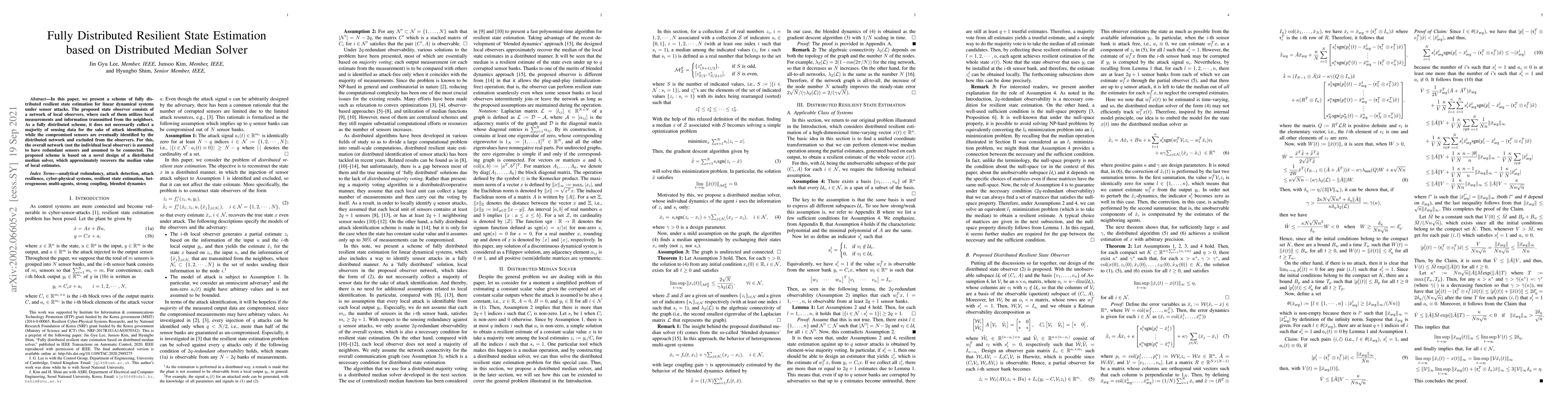 This paper introduces a fully distributed resilient state estimation method for linear dynamical systems using a network of local observers that leverages distributed median solvers to identify and exclude compromised sensors, thereby maintaining system accuracy despite potential attacks. The scheme does not rely on centralized data collection, enhancing its resilience and efficiency.