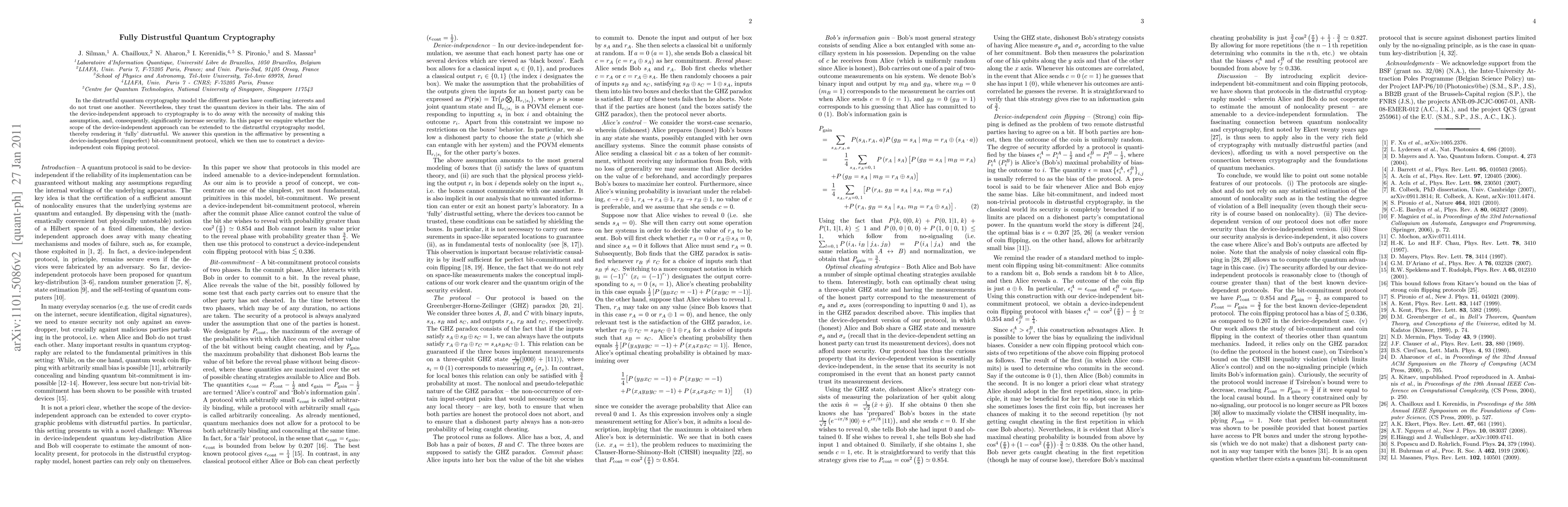 Researchers developed a device-independent bit-commitment protocol that can be used to create a fully distrustful quantum cryptography system, where parties with conflicting interests trust only their quantum devices.