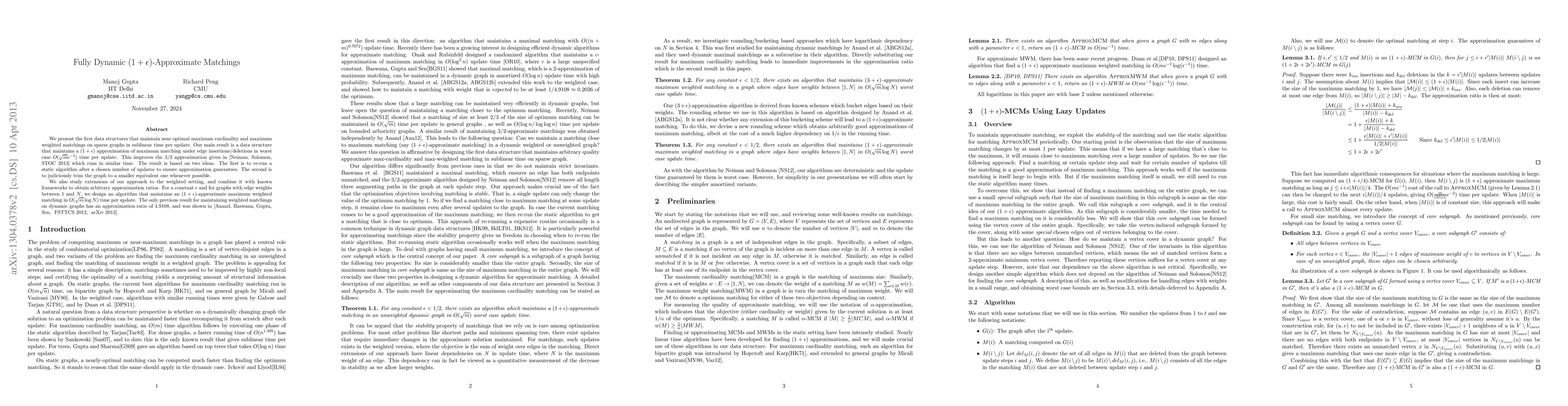 We present the first data structures that maintain near optimal maximum cardinality and maximum weighted matchings on sparse graphs in sublinear time per update. Our main result is a data structure that maintains a $(1+\epsilon)$ approximation of maximum matching under edge insertions/deletions in worst case $O(\sqrt{m}\epsilon^{-2})$ time per update. This improves the 3/2 approximation given in [Neiman,Solomon,STOC 2013] which runs in similar time. The result is based on two ideas. The first is to re-run a static algorithm after a chosen number of updates to ensure approximation guarantees. The second is to judiciously trim the graph to a smaller equivalent one whenever possible. We also study extensions of our approach to the weighted setting, and combine it with known frameworks to obtain arbitrary approximation ratios. For a constant $\epsilon$ and for graphs with edge weights between 1 and N, we design an algorithm that maintains an $(1+\epsilon)$-approximate maximum weighted matching in $O(\sqrt{m} \log N)$ time per update. The only previous result for maintaining weighted matchings on dynamic graphs has an approximation ratio of 4.9108, and was shown in [Anand,Baswana,Gupta,Sen, FSTTCS 2012, arXiv 2012].