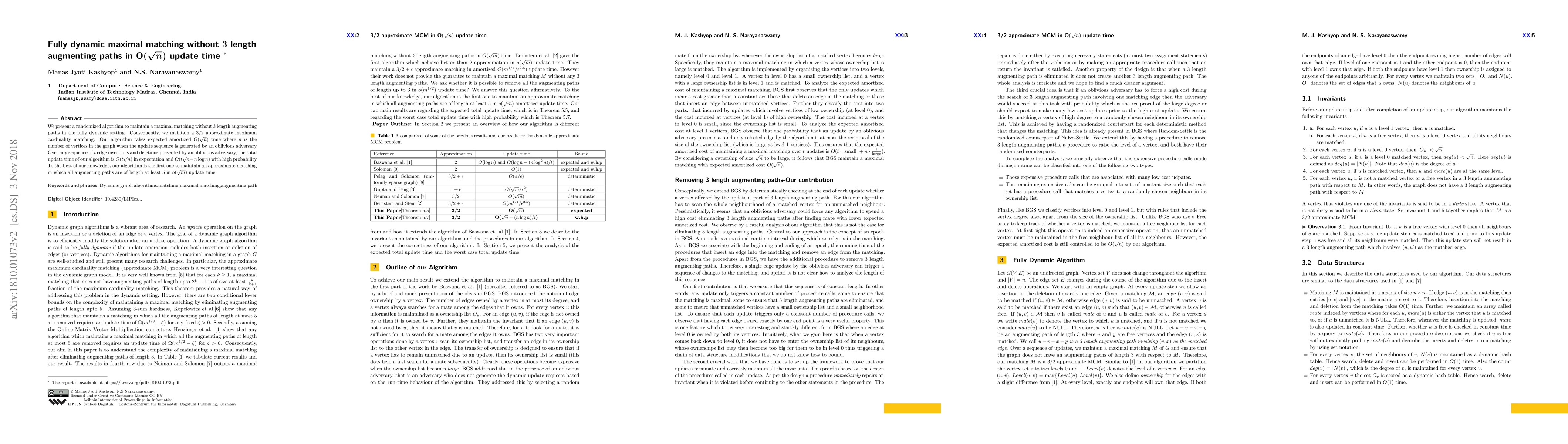 Researchers have developed an algorithm to maintain a 3/2 approximate maximum cardinality matching in graphs with expected $O( oot{n})$ update time, achieving this goal for the first time while ensuring that all augmenting paths are at least length 5.