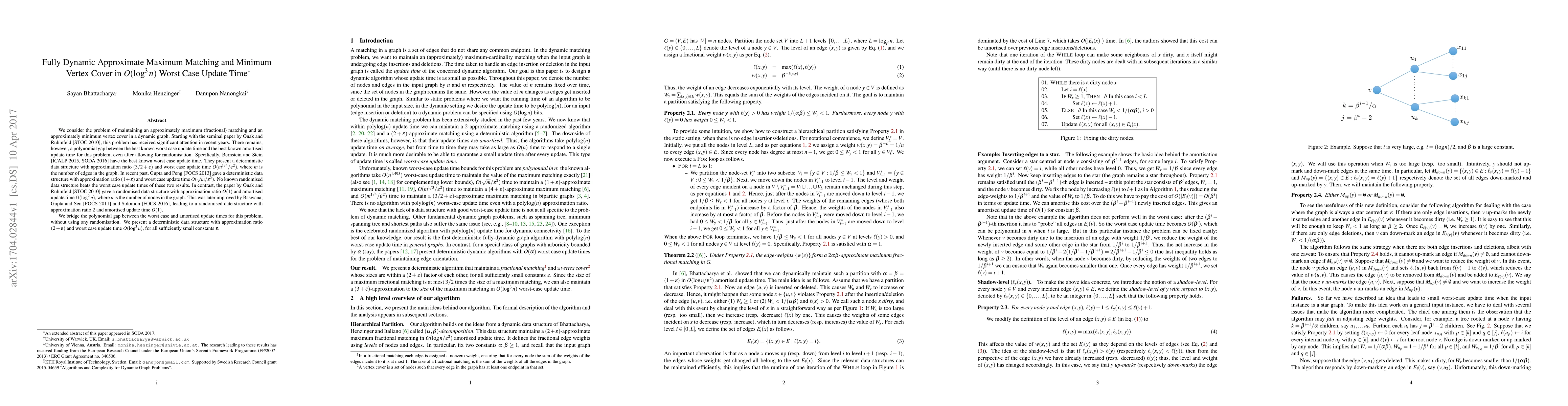 We consider the problem of maintaining an approximately maximum (fractional) matching and an approximately minimum vertex cover in a dynamic graph. Starting with the seminal paper by Onak and Rubinfeld [STOC 2010], this problem has received significant attention in recent years. There remains, however, a polynomial gap between the best known worst case update time and the best known amortised update time for this problem, even after allowing for randomisation. Specifically, Bernstein and Stein [ICALP 2015, SODA 2016] have the best known worst case update time. They present a deterministic data structure with approximation ratio $(3/2+\epsilon)$ and worst case update time $O(m^{1/4}/\epsilon^2)$, where $m$ is the number of edges in the graph. In recent past, Gupta and Peng [FOCS 2013] gave a deterministic data structure with approximation ratio $(1+\epsilon)$ and worst case update time $O(\sqrt{m}/\epsilon^2)$. No known randomised data structure beats the worst case update times of these two results. In contrast, the paper by Onak and Rubinfeld [STOC 2010] gave a randomised data structure with approximation ratio $O(1)$ and amortised update time $O(\log^2 n)$, where $n$ is the number of nodes in the graph. This was later improved by Baswana, Gupta and Sen [FOCS 2011] and Solomon [FOCS 2016], leading to a randomised date structure with approximation ratio $2$ and amortised update time $O(1)$. We bridge the polynomial gap between the worst case and amortised update times for this problem, without using any randomisation. We present a deterministic data structure with approximation ratio $(2+\epsilon)$ and worst case update time $O(\log^3 n)$, for all sufficiently small constants $\epsilon$.