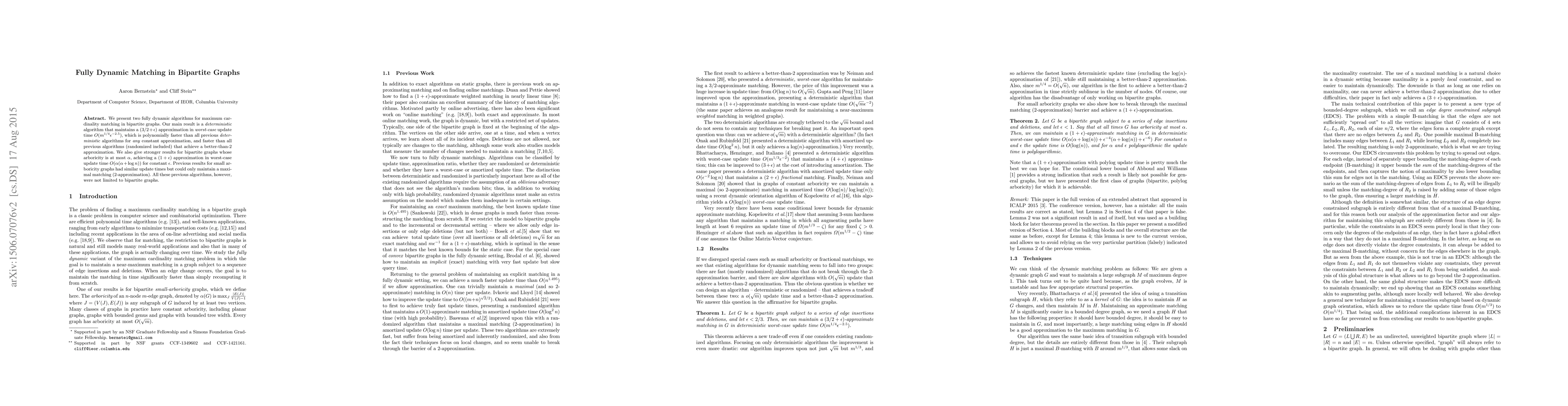 This paper presents a fully dynamic algorithm for maintaining a $3/2 + \eps$ approximation of maximum cardinality matching in bipartite graphs with update time $O(m^{1/4}\eps^{/2.5})$. It introduces an edge degree constrained subgraph (EDCS) to dynamically maintain a sufficiently large matching and achieves better-than-2 approximation with sub-$\sqrt{m}$ update time.