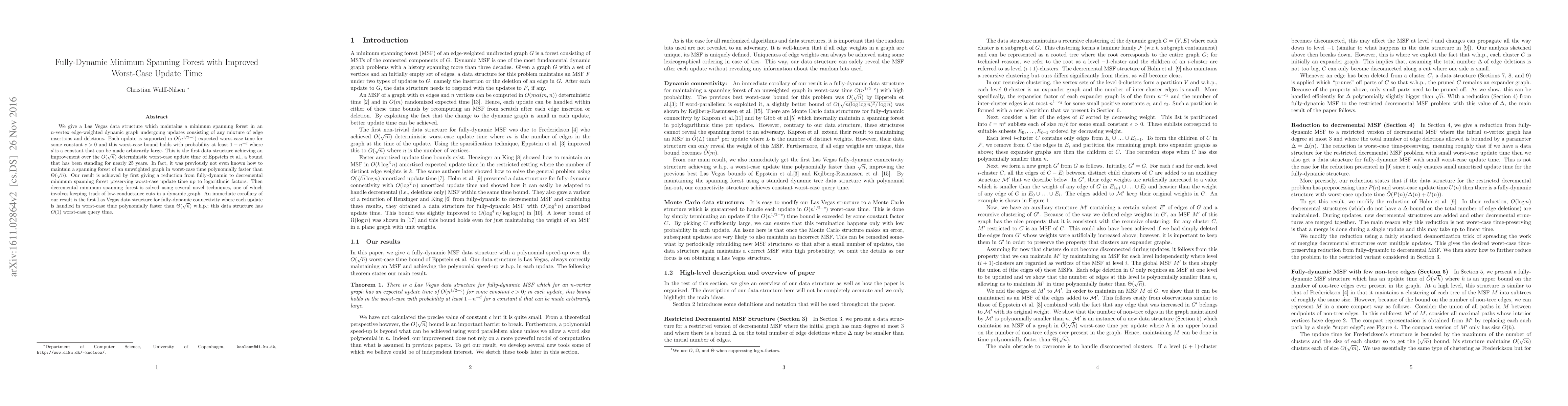 We give a Las Vegas data structure which maintains a minimum spanning forest in an n-vertex edge-weighted dynamic graph undergoing updates consisting of any mixture of edge insertions and deletions. Each update is supported in O(n^{1/2 - c}) expected worst-case time for some constant c > 0 and this worst-case bound holds with probability at least 1 - n^{-d} where d is a constant that can be made arbitrarily large. This is the first data structure achieving an improvement over the O(n^{1/2}) deterministic worst-case update time of Eppstein et al., a bound that has been standing for nearly 25 years. In fact, it was previously not even known how to maintain a spanning forest of an unweighted graph in worst-case time polynomially faster than Theta(n^{1/2}). Our result is achieved by first giving a reduction from fully-dynamic to decremental minimum spanning forest preserving worst-case update time up to logarithmic factors. Then decremental minimum spanning forest is solved using several novel techniques, one of which involves keeping track of low-conductance cuts in a dynamic graph. An immediate corollary of our result is the first Las Vegas data structure for fully-dynamic connectivity where each update is handled in worst-case time polynomially faster than Theta(n^{1/2}) w.h.p.; this data structure has O(1) worst-case query time.