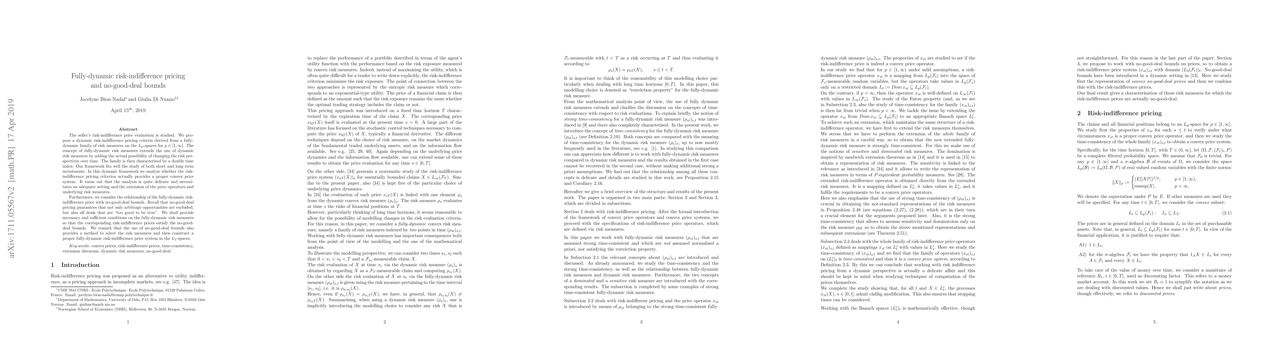 The paper introduces a novel fully-dynamic risk-indifference pricing model that extends dynamic risk measures by incorporating a double time index, ensuring time-consistency and providing conditions for no-good-deal bounds.