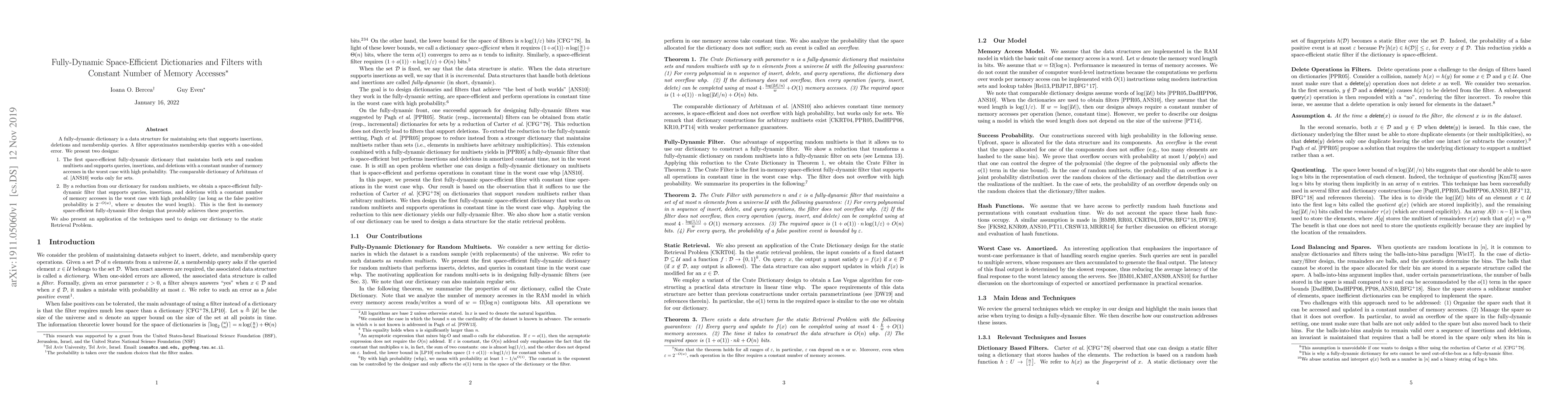 A fully-dynamic dictionary is a data structure for maintaining sets that supports insertions, deletions and membership queries. A filter approximates membership queries with a one-sided error. We present two designs: 1. The first space-efficient fully-dynamic dictionary that maintains both sets and random multisets and supports queries, insertions, and deletions with a constant number of memory accesses in the worst case with high probability. The comparable dictionary of Arbitman, Naor, and Segev [FOCS 2010] works only for sets. 2. By a reduction from our dictionary for random multisets, we obtain a space-efficient fully-dynamic filter that supports queries, insertions, and deletions with a constant number of memory accesses in the worst case with high probability (as long as the false positive probability is $2^{-O(w)}$, where $w$ denotes the word length). This is the first in-memory space-efficient fully-dynamic filter design that provably achieves these properties. We also present an application of the techniques used to design our dictionary to the static Retrieval Problem.