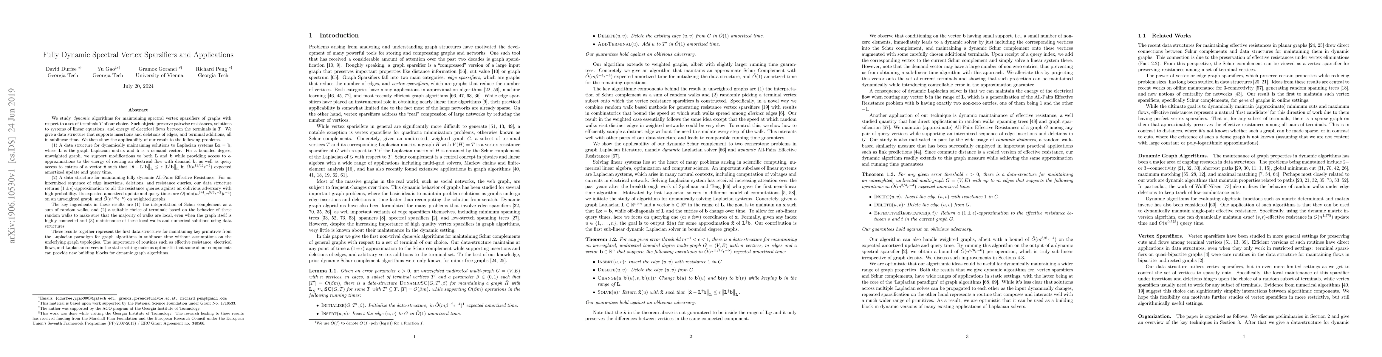This paper presents dynamic algorithms for maintaining spectral vertex sparsifiers of graphs, supporting edge and terminal modifications in sublinear time. It applies these algorithms to efficiently handle Laplacian systems and All-Pairs Effective Resistance, achieving sublinear update and query times for both problems.