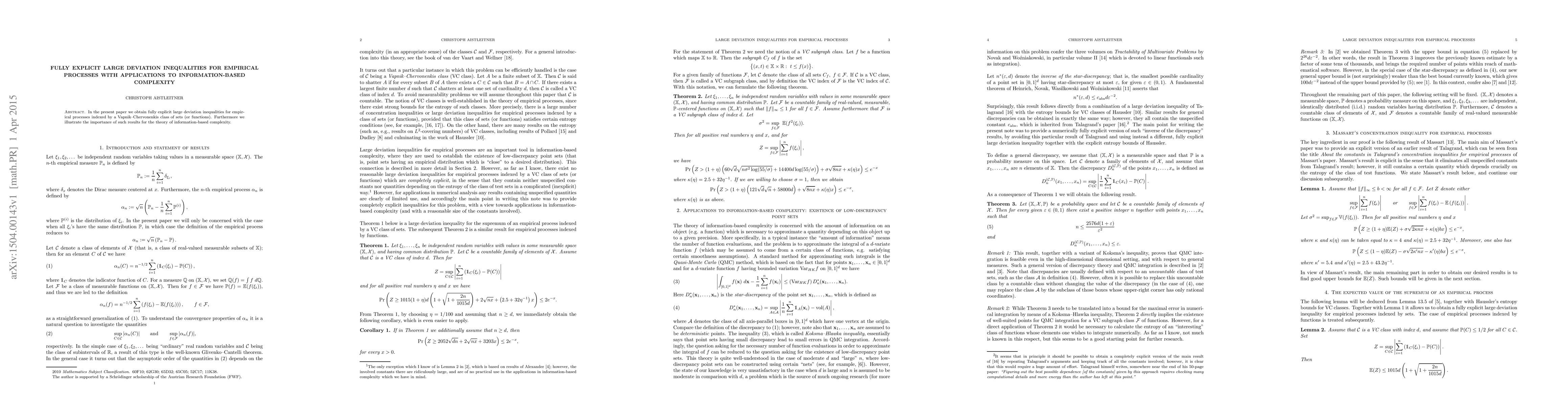 In the present paper we obtain fully explicit large deviation inequalities for empirical processes indexed by a Vapnik--Chervonenkis class of sets (or functions). Furthermore we illustrate the importance of such results for the theory of information-based complexity.
