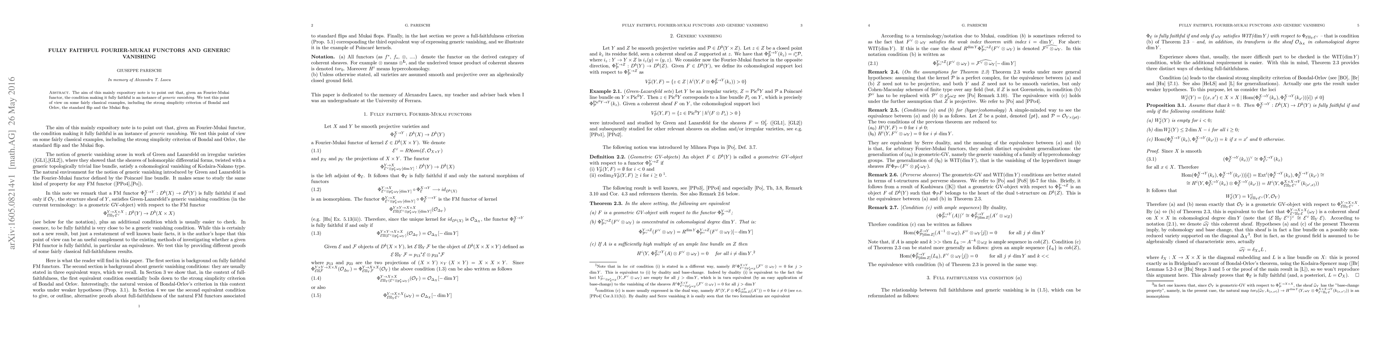 This paper explains that the fully faithful condition for Fourier-Mukai functors is an example of generic vanishing. It applies this concept to classical examples like Bondal-Orlov's strong simplicity criterion, the standard flip, and the Mukai flop.