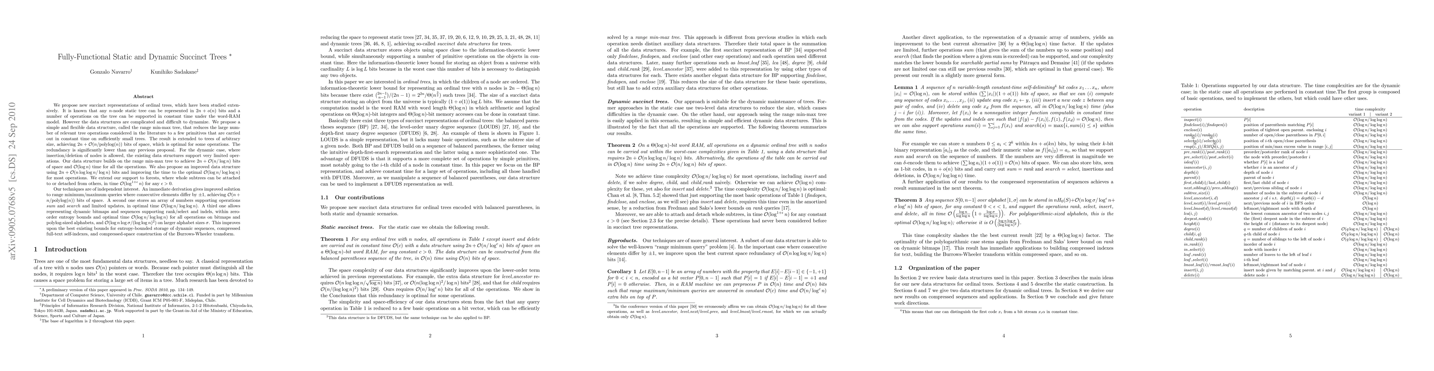 Researchers propose a new data structure called the range min-max tree to represent ordinal trees, achieving efficient storage and operation times for both static and dynamic trees.