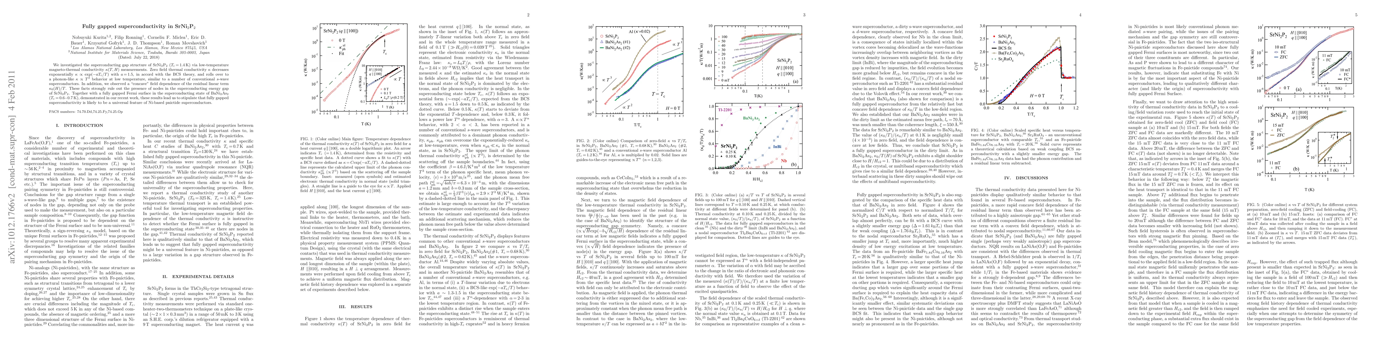 SrNi$_2$P$_2$ exhibits fully gapped superconductivity as confirmed by its exponential zero-field thermal conductivity behavior consistent with BCS theory, and a "concave" field dependence, indicating no nodes in the superconducting gap. This suggests fully gapped superconductivity is common in Ni-based pnictides.