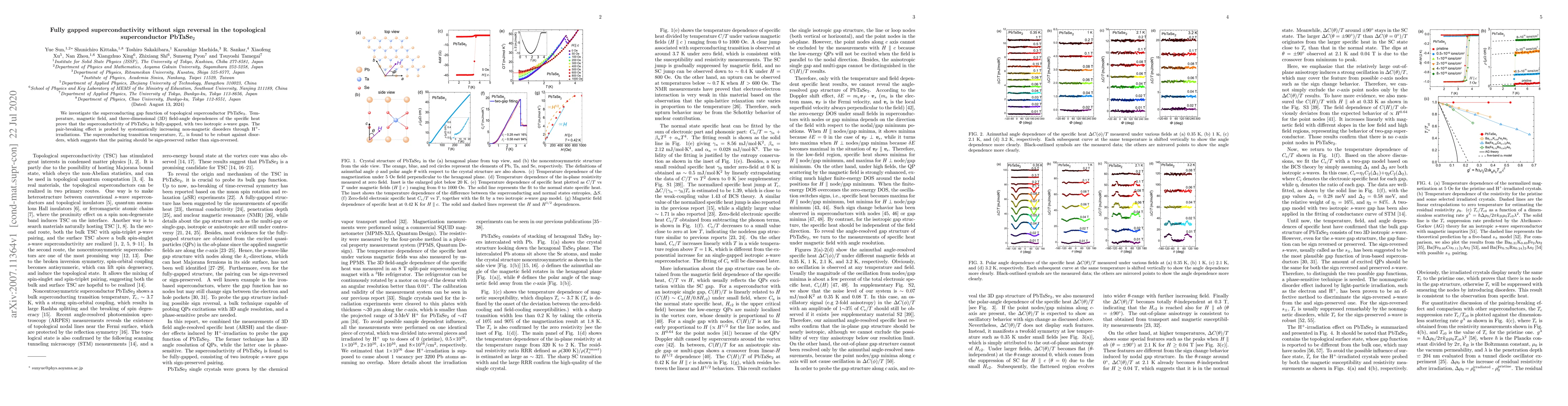 We investigate the superconducting gap function of topological superconductor PbTaSe$_2$. Temperature, magnetic field, and three-dimensional (3D) field-angle dependences of the specific heat prove that the superconductivity of PbTaSe$_2$ is fully-gapped, with two isotropic $s$-wave gaps. The pair-breaking effect is probed by systematically increasing non-magnetic disorders through H$^+$-irradiations. The superconducting transition temperature, $T_{\rm{c}}$, is found to be robust against disorders, which suggests that the pairing should be sign-preserved rather than sign-reversed.