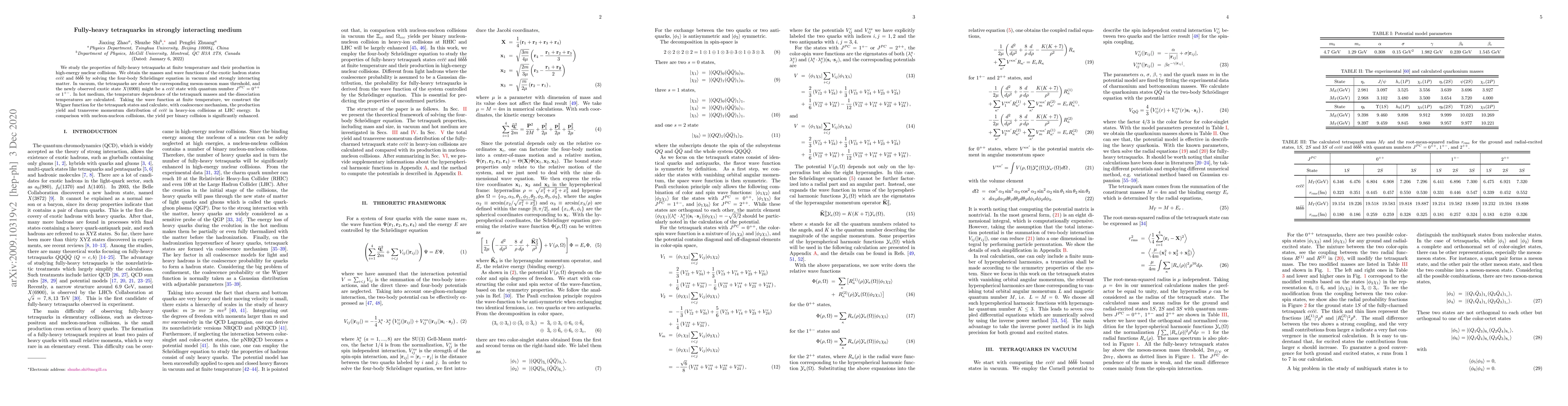 This paper investigates the properties and production of fully-heavy tetraquarks, specifically $cc\bar c\bar c$ and $bb\bar b\bar b$, at finite temperatures. It calculates their masses and wave functions in vacuum and strongly interacting medium, suggesting the exotic state $X(6900)$ could be a $cc\bar c\bar c$ tetraquark. The study also predicts enhanced production yields of these tetraquarks in high-energy nuclear collisions compared to nucleon-nucleon collisions.