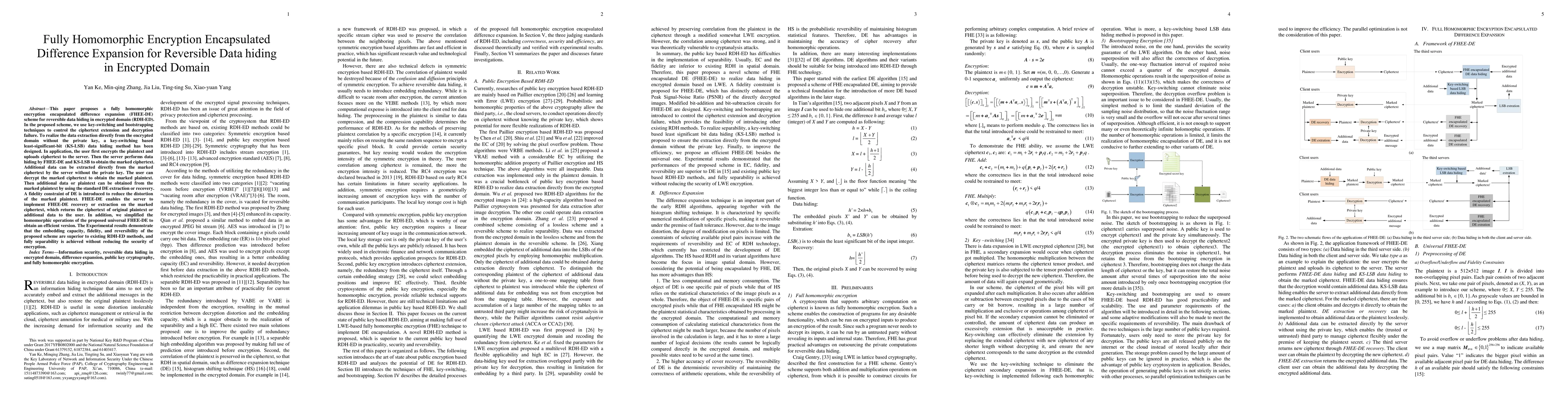 The paper proposes a Fully Homomorphic Encryption Encapsulated Difference Expansion (FHEE-DE) scheme for Reversible Data Hiding in the Encrypted Domain (RDH-ED). It uses key-switching and bootstrapping techniques to manage ciphertext expansion and decryption failures, enabling data extraction directly from the encrypted domain without the private key.