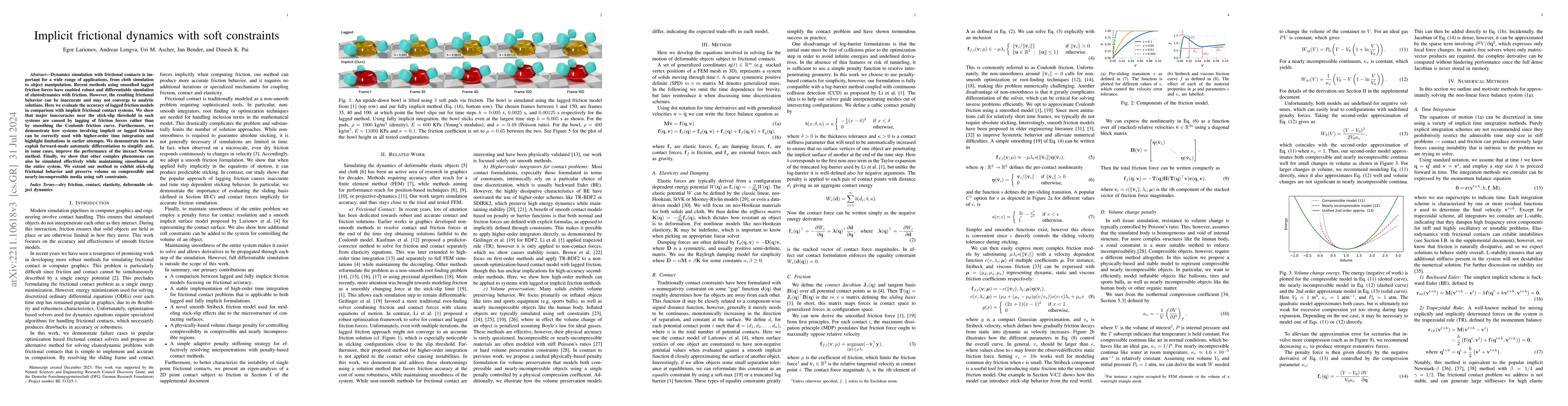 The paper introduces a fully implicit, higher-order integration method for simulating hyperelastic objects with frictional contacts, addressing convergence issues in lagged friction formulations and extending the approach to include static friction and volume preservation.