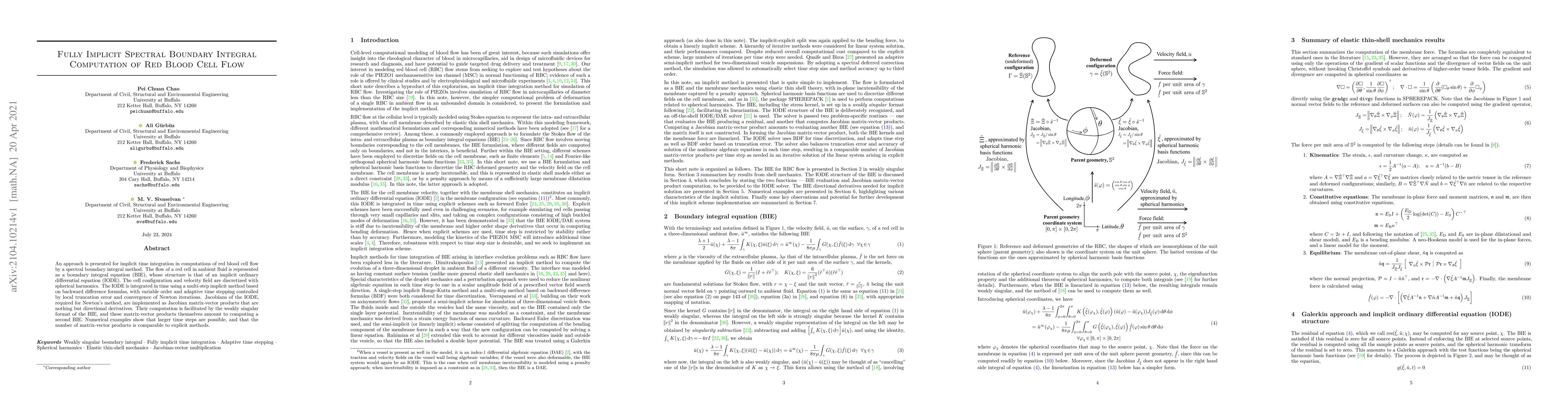A new approach uses a boundary integral method to simulate red blood cell flow with larger time steps than existing methods, and requires fewer matrix-vector products.