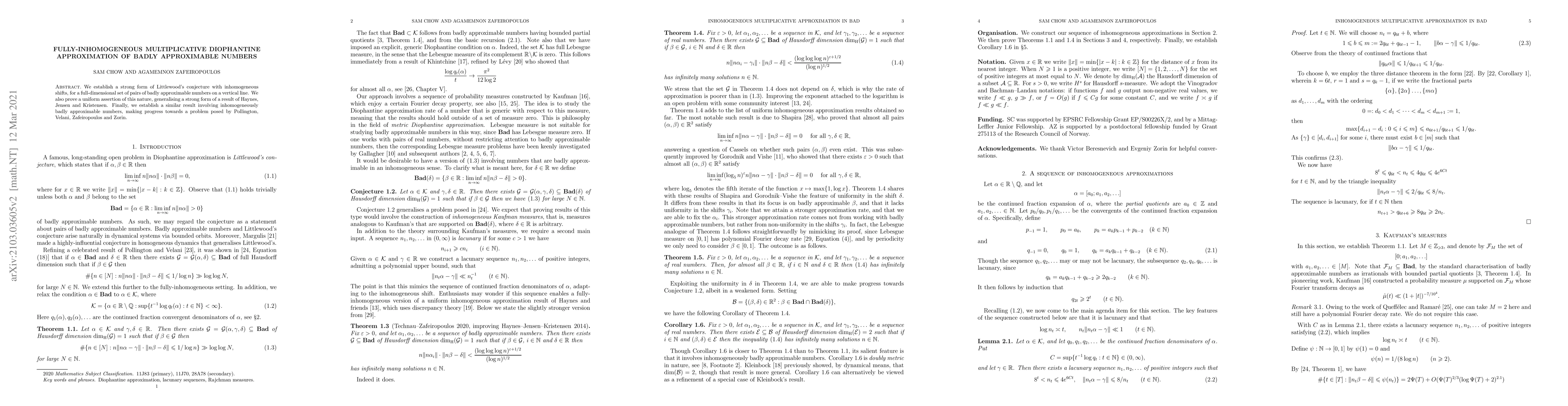 We establish a strong form of Littlewood's conjecture with inhomogeneous shifts, for a full-dimensional set of pairs of badly approximable numbers on a vertical line. We also prove a uniform assertion of this nature, generalising a strong form of a result by Haynes, Jensen and Kristensen. Finally, we establish a similar result involving inhomogeneously badly approximable numbers, making progress towards a problem posed by Pollington, Velani, Zafeiropoulos and Zorin.