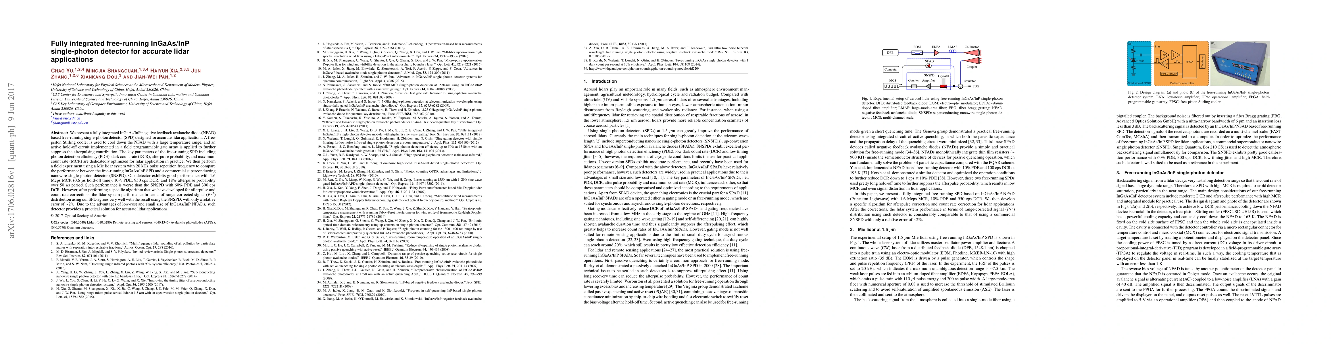 We present a fully integrated InGaAs/InP negative feedback avalanche diode (NFAD) based free-running single-photon detector (SPD) designed for accurate lidar applications. A free-piston Stirling cooler is used to cool down the NFAD with a large temperature range, and an active hold-off circuit implemented in a field programmable gate array is applied to further suppress the afterpulsing contribution. The key parameters of the free-running SPD including photon detection efficiency (PDE), dark count rate (DCR), afterpulse probability, and maximum count rate (MCR) are dedicatedly optimized for lidar application in practice. We then perform a field experiment using a Mie lidar system with 20 kHz pulse repetition frequency to compare the performance between the free-running InGaAs/InP SPD and a commercial superconducting nanowire single-photon detector (SNSPD). Our detector exhibits good performance with 1.6 Mcps MCR (0.6 {\mu}s hold-off time), 10% PDE, 950 cps DCR, and 18% afterpulse probability over 50 {\mu}s period. Such performance is worse than the SNSPD with 60% PDE and 300 cps DCR. However, after performing a specific algorithm that we have developed for afterpulse and count rate corrections, the lidar system performance in terms of range-corrected signal (Pr2) distribution using our SPD agrees very well with the result using the SNSPD, with only a relative error of ~2%. Due to the advantages of low-cost and small size of InGaAs/InP NFADs, such detector provides a practical solution for accurate lidar applications.