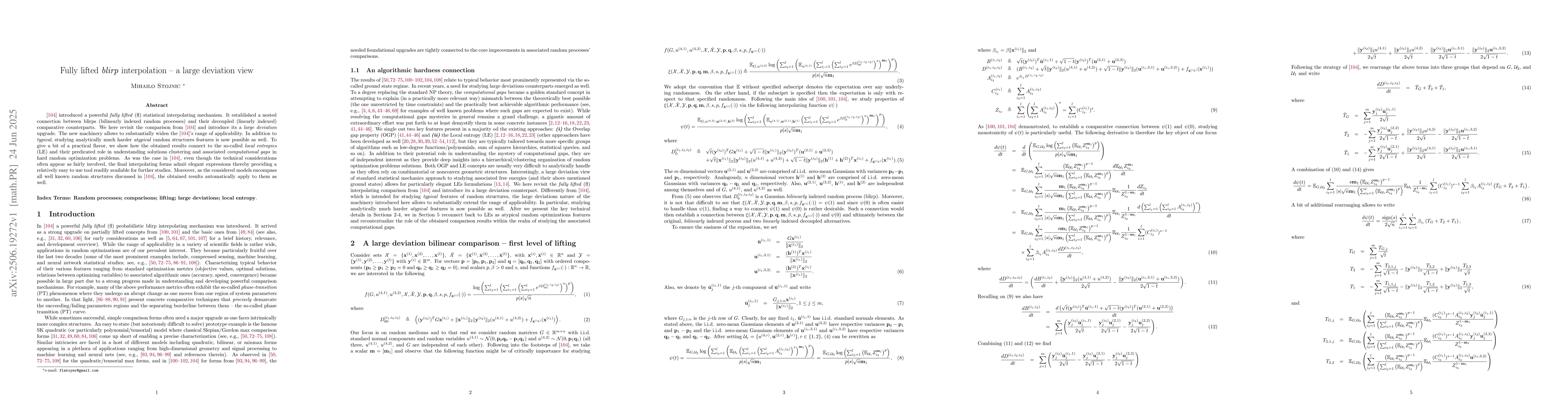 [104] introduced a powerful \emph{fully lifted} (fl) statistical interpolating mechanism. It established a nested connection between blirps (bilinearly indexed random processes) and their decoupled (linearly indexed) comparative counterparts. We here revisit the comparison from [104] and introduce its a \emph{large deviation} upgrade. The new machinery allows to substantially widen the [104]'s range of applicability. In addition to \emph{typical}, studying analytically much harder \emph{atypical} random structures features is now possible as well. To give a bit of a practical flavor, we show how the obtained results connect to the so-called \emph{local entropies} (LE) and their predicated role in understanding solutions clustering and associated \emph{computational gaps} in hard random optimization problems. As was the case in [104], even though the technical considerations often appear as fairly involved, the final interpolating forms admit elegant expressions thereby providing a relatively easy to use tool readily available for further studies. Moreover, as the considered models encompass all well known random structures discussed in [104], the obtained results automatically apply to them as well.
